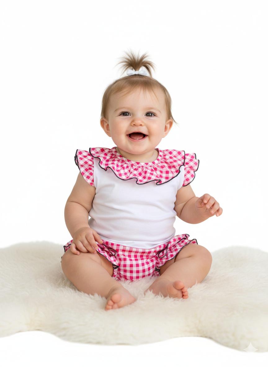 Daniesty Conjunto Bebé Camiseta Volante Cuadros Vichy Braguita Volantes