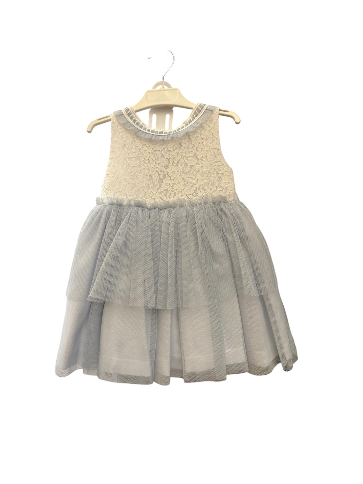 Basmarti Vestido Infantil ceremonia Guipour Blanco volantes Tul Azul