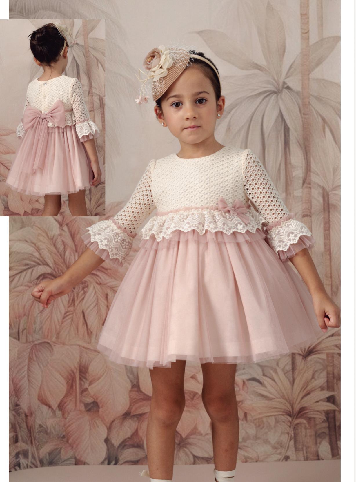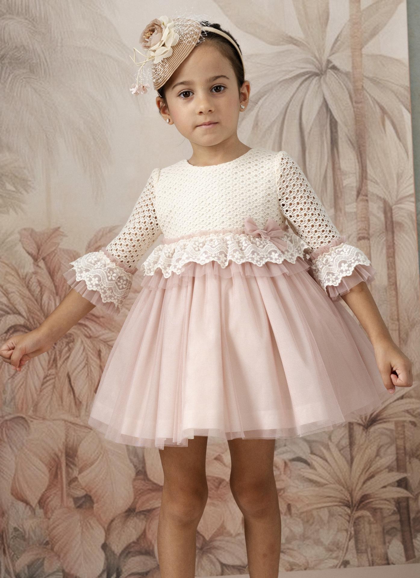 Basmarti Vestido Infantil ceremonia manga francesa falda tul rosa 26030