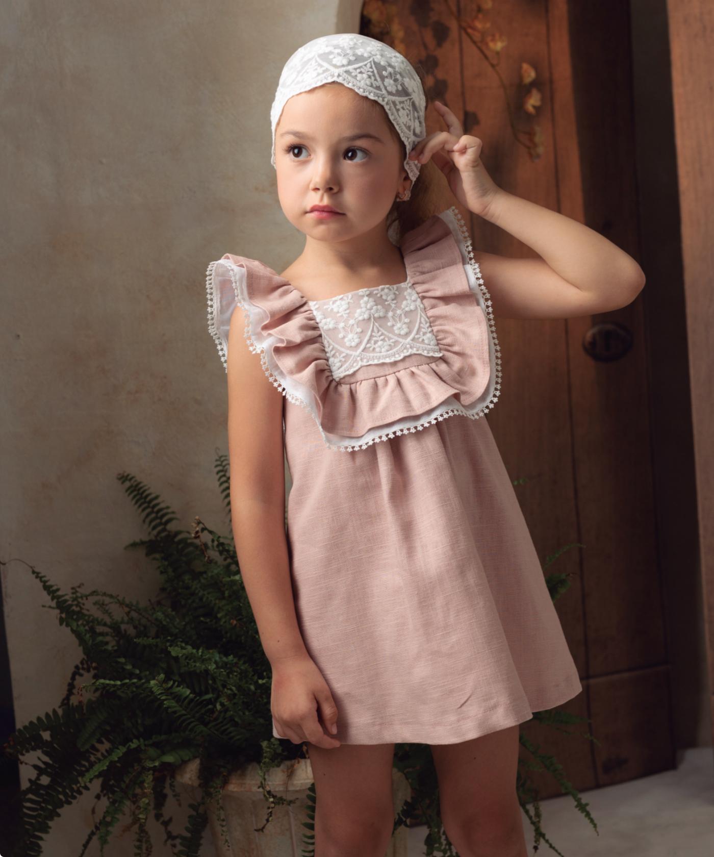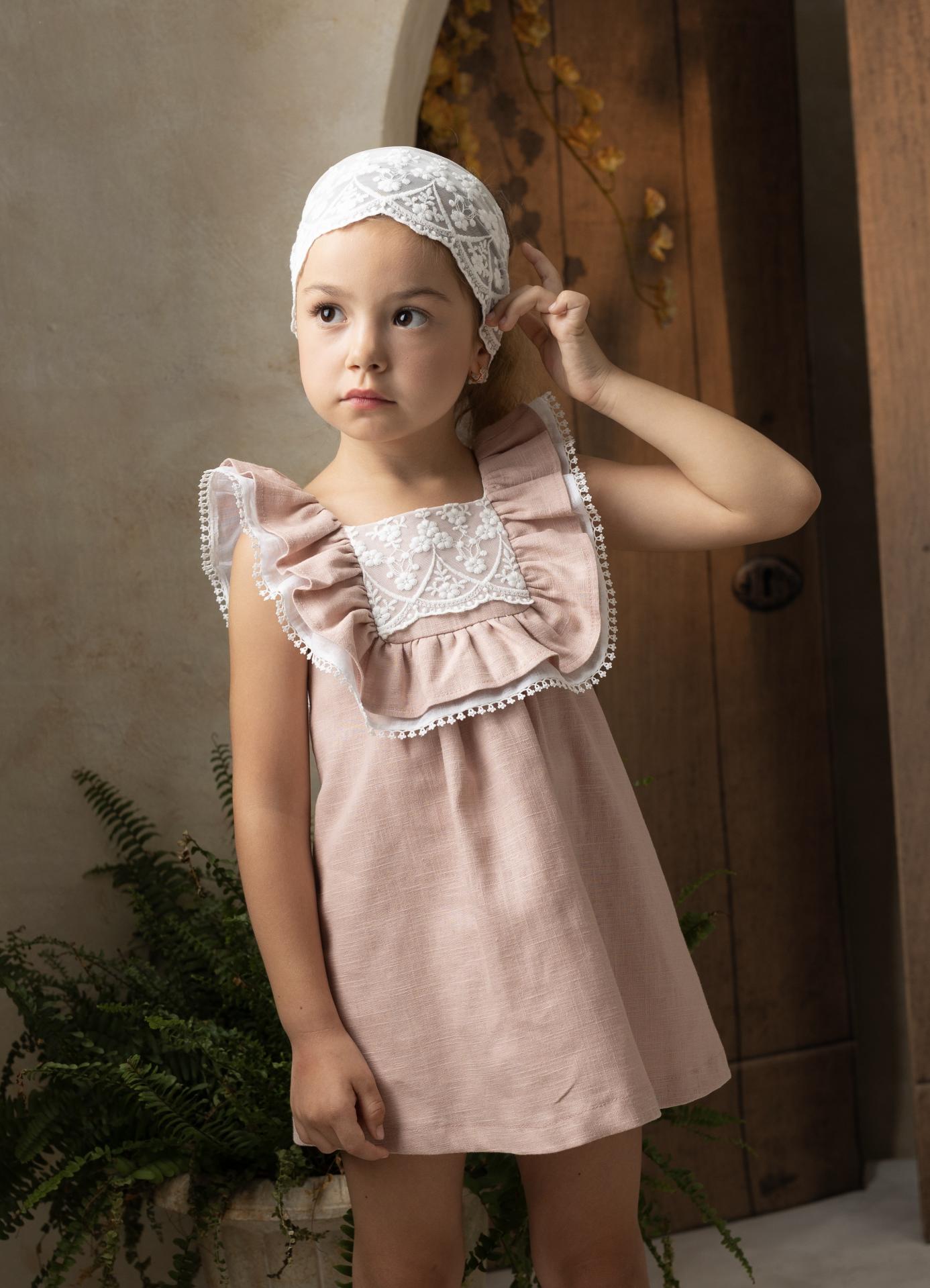 Basmarti Vestido Infantil Ceremonia corte evasé Rosa Pieza guipour blanco 26051