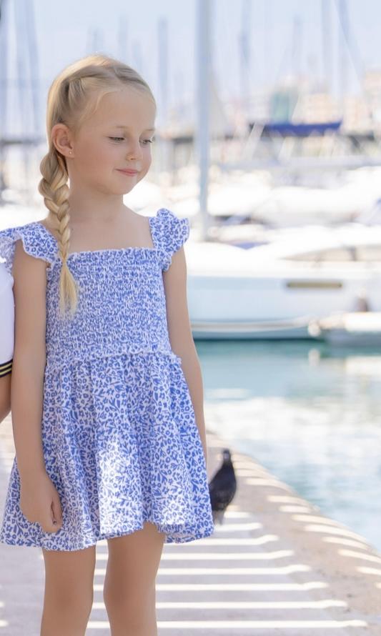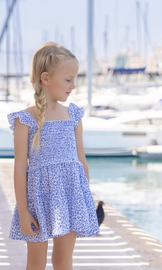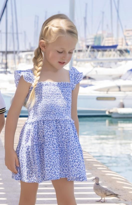 Miranda vestido Infantil Cuerpo Elástico Estampado Azul "Hibisco" 0628/V