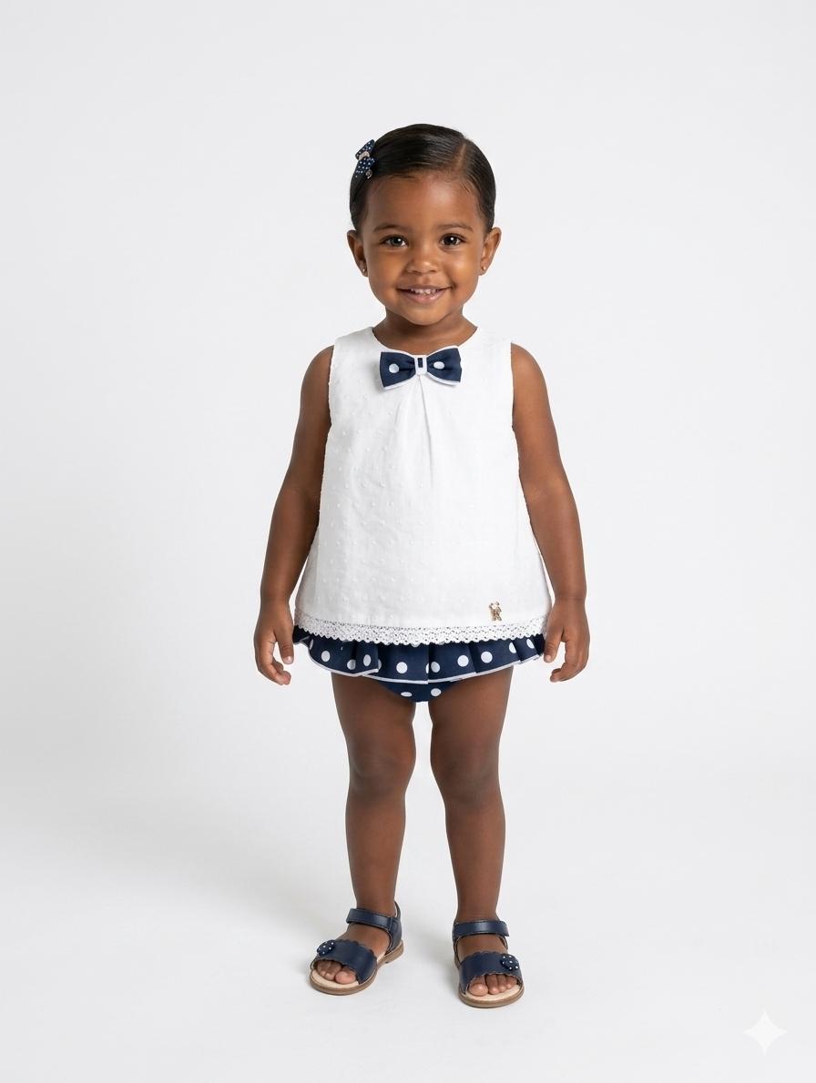 Nekenia Conjunto Bebé Blusa Tirantes Plumeti Braguita Topos 24VC18 Marino