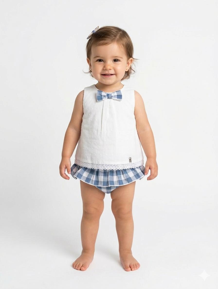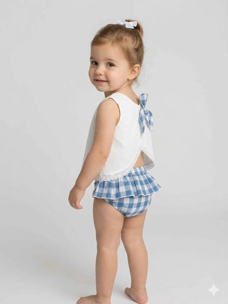 Nekenia Conjunto Bebé Blusa Tirantes Plumeti Braguita Cuadros 24VC18 Azul