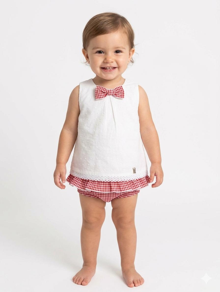 Nekenia Conjunto Bebé Blusa Tirantes Plumeti Braguita Cuadro Vichy 24VC18 Rojo