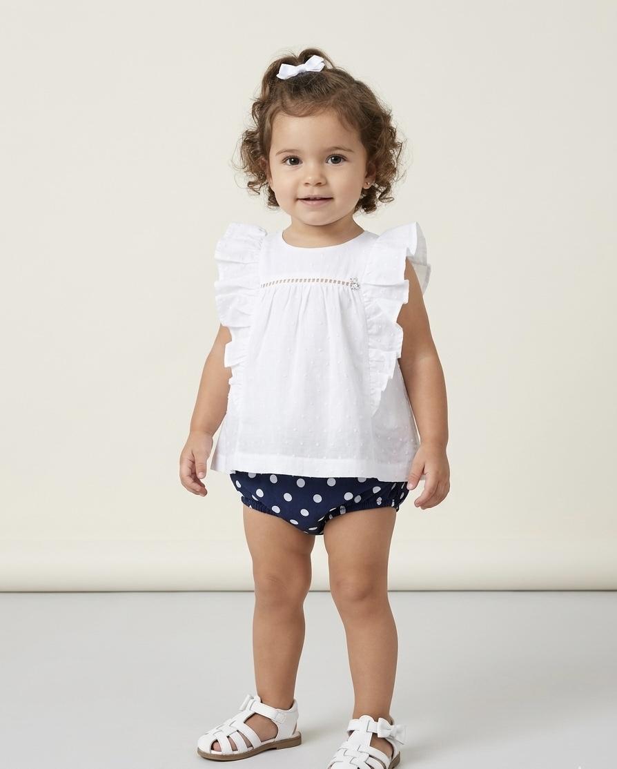 Nekenia Conjunto Bebé Blusa Sin Manga Blanca Braguita Topos 24VC06 Marino
