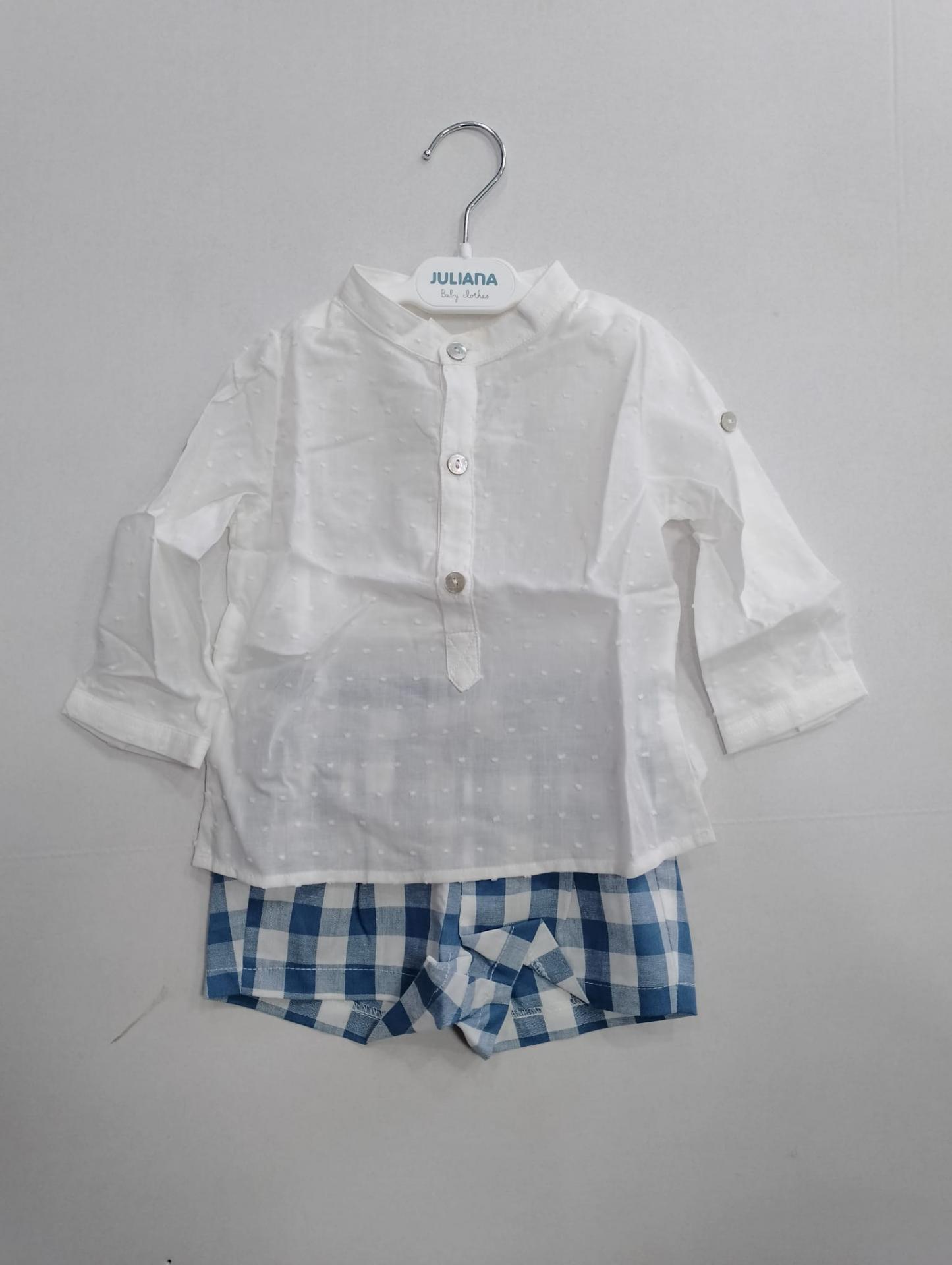 Nekenia Conjunto Bebé Camisa M/L Plumeti Blanco Pantalon Corto Cuadros 24VC19 Azul