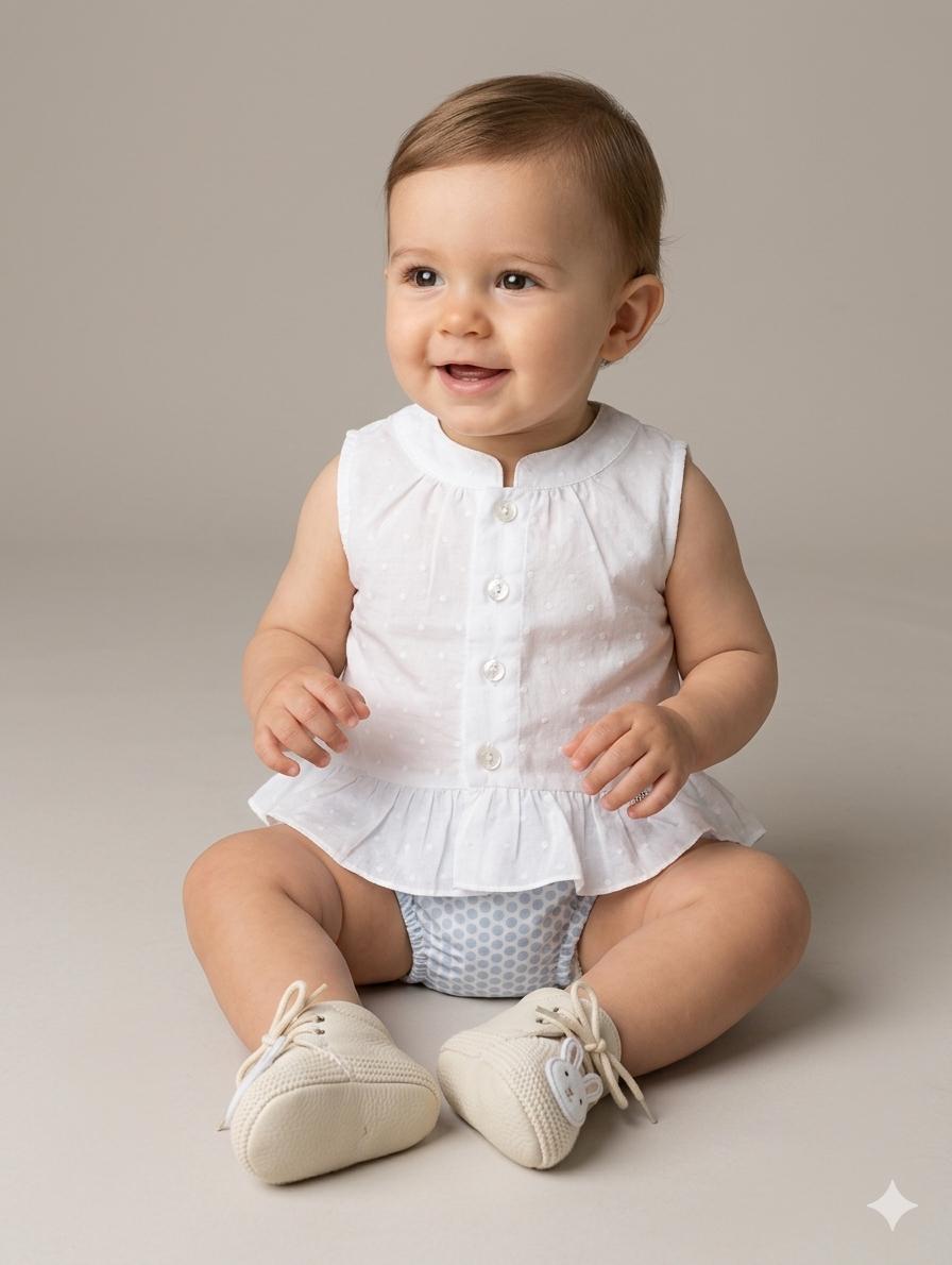 Nekenia Conjunto Bebé Blusa Sin Manga Plumeti Braguita topos 24VC05 Azul
