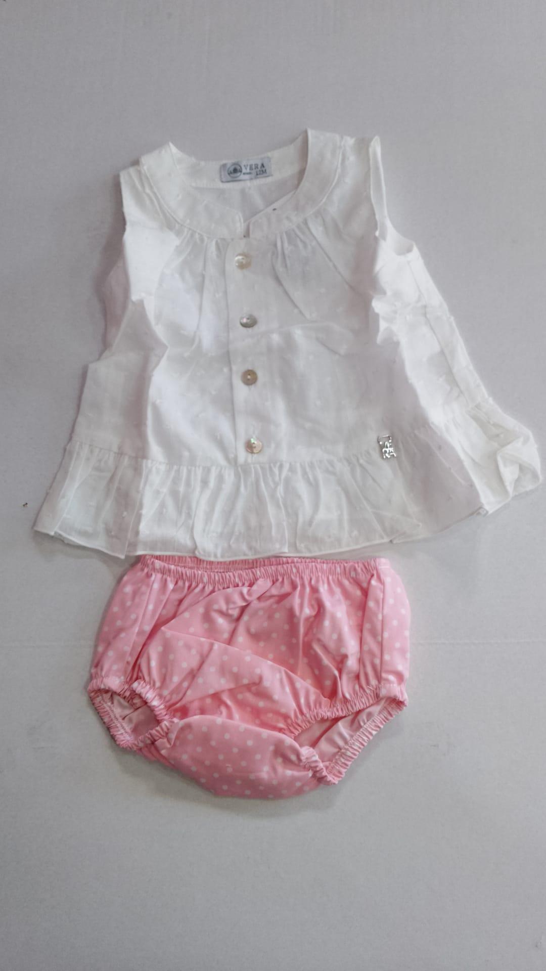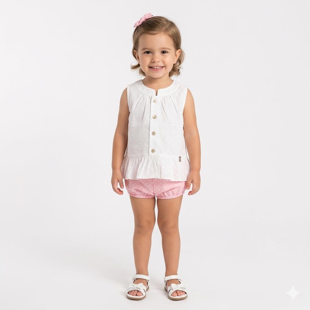 Nekenia Conjunto Bebé Blusa Sin Manga Plumeti Braguita Topos 24VC05 Rosa
