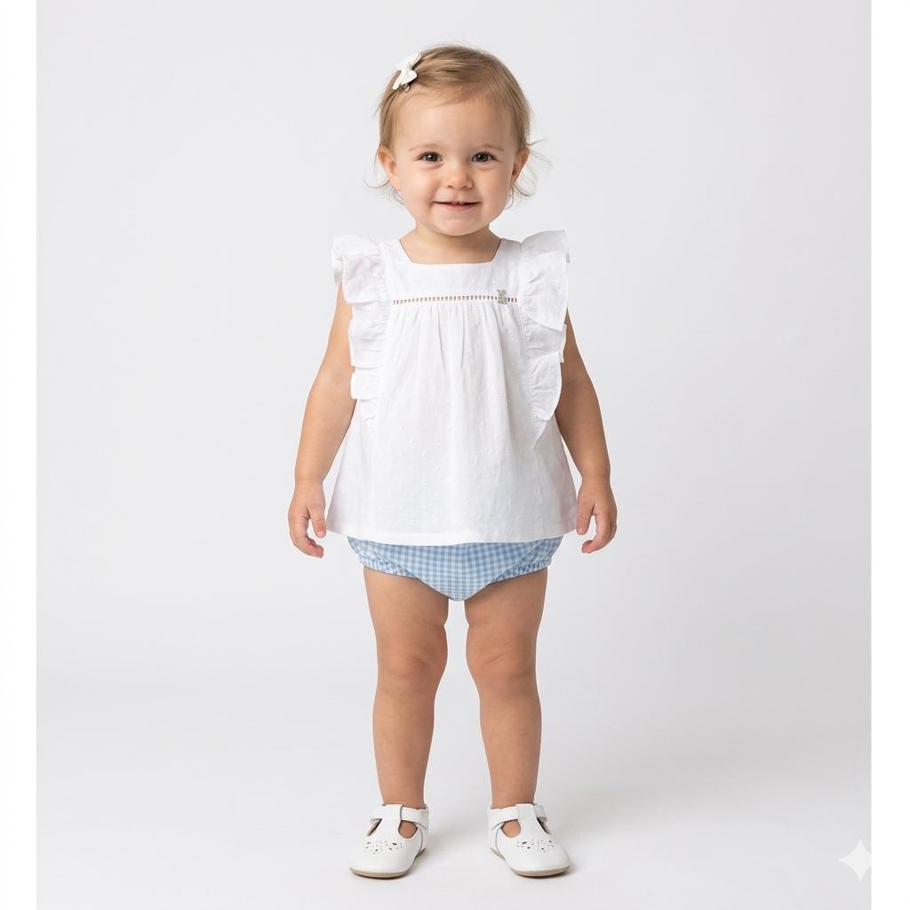 Nekenia Conjunto Bebé Blusa Sin Manga Blanca Braguita Cuadro Vichy 24VC06 Azul