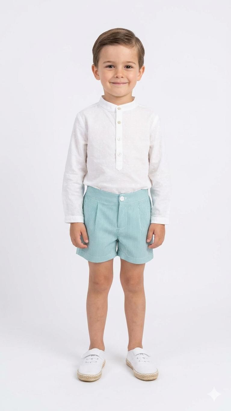 Nekenia Conjunto Bebé Camisa M/L Plumeti Blanco Pantalon Corto Rayas 24VC19 Verde