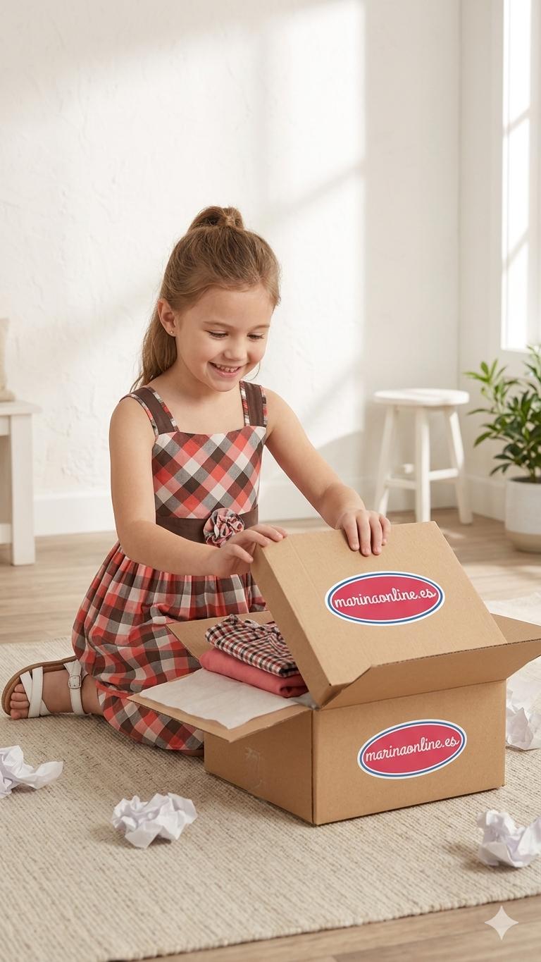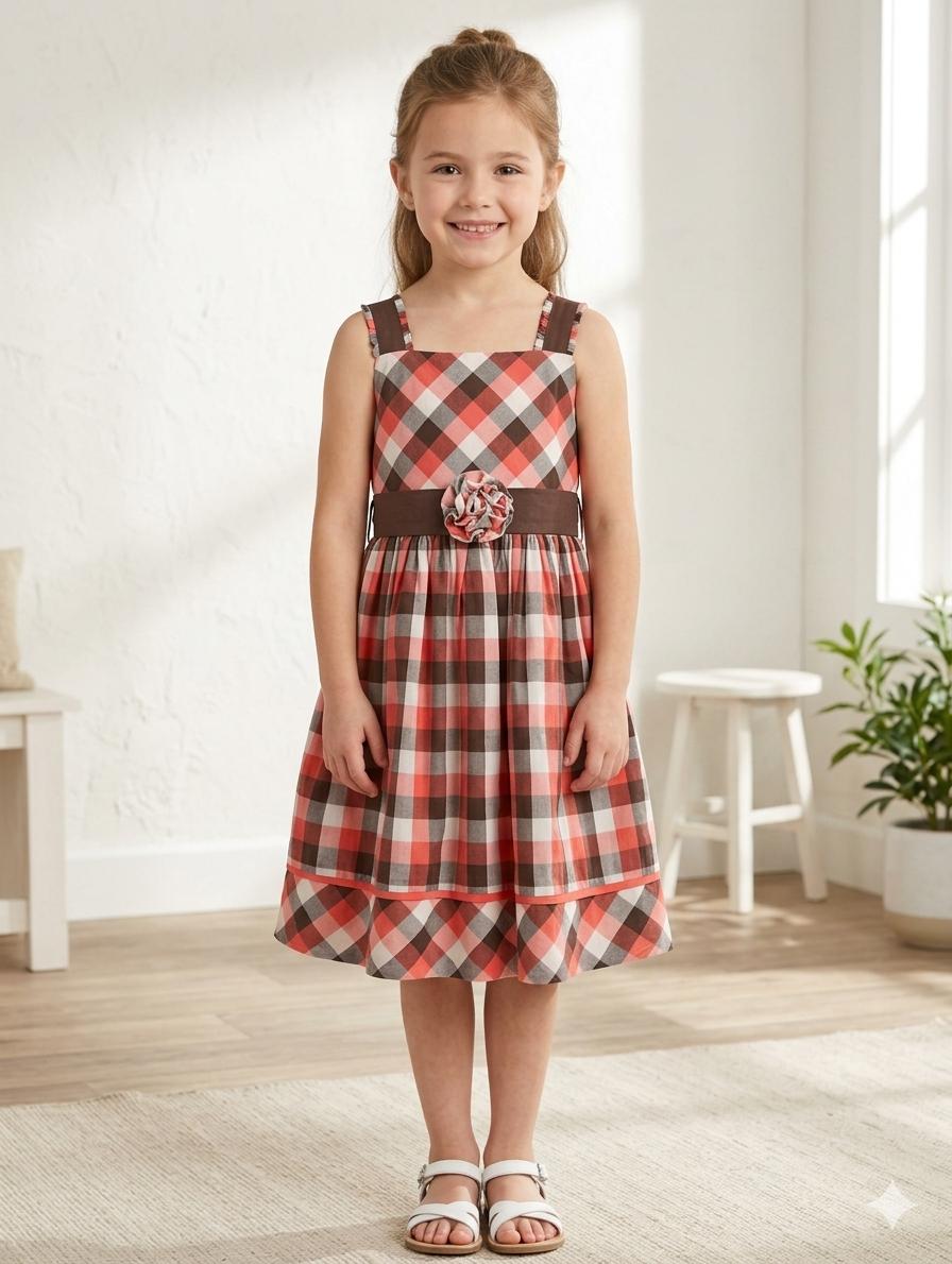 Daniesty Vestido Infantil Vuelo Cuadros Marron Y Rojo Roseton Tela Familia Carmen 002