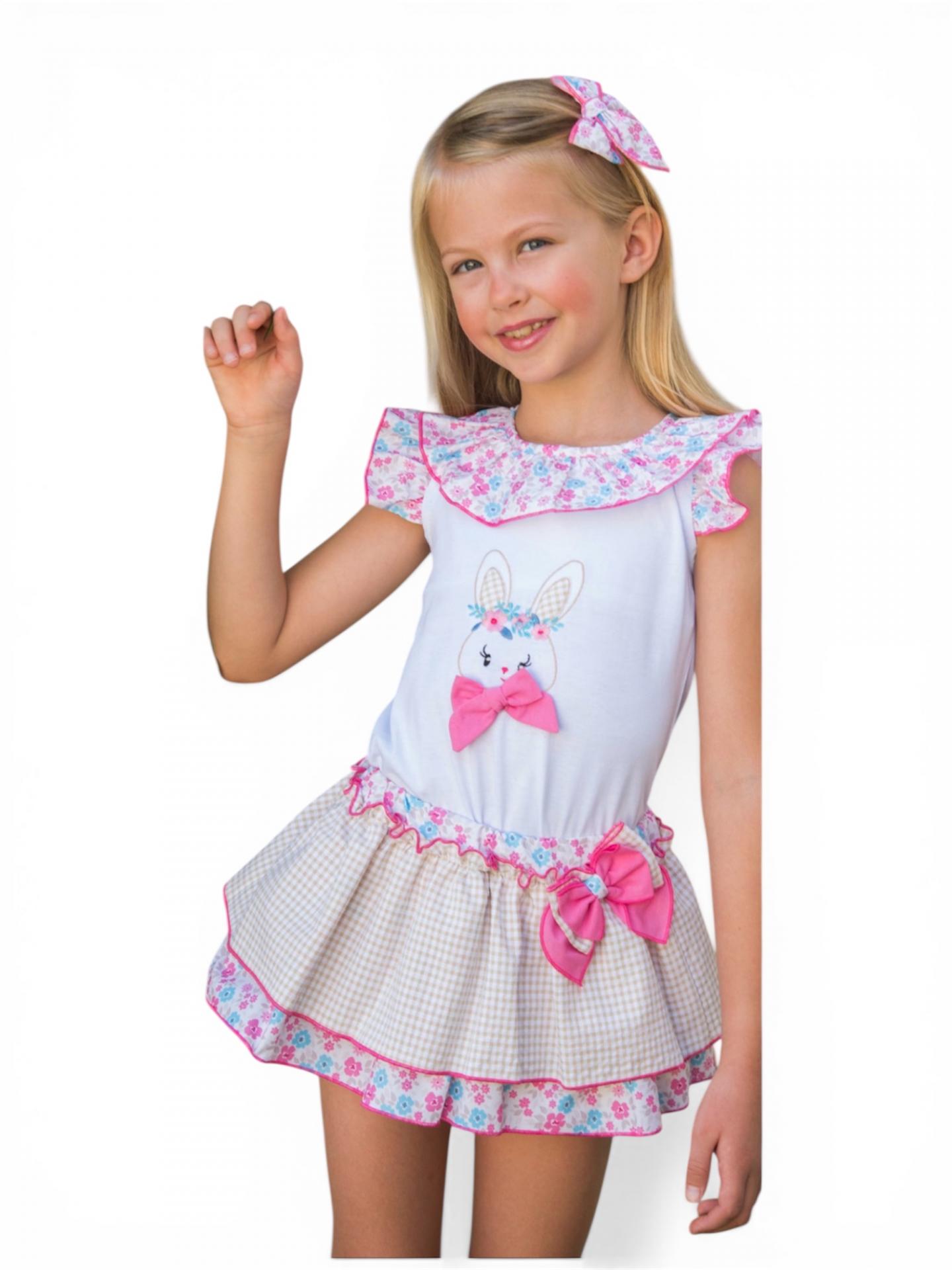 Daniesty Conjunto Infantil Falda Fucsia Volante Cuadro Vichy Blusa Cuadro Vichy Familia Dulce 014