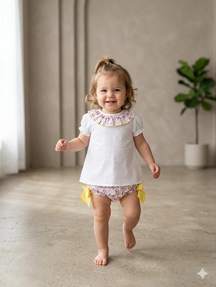 Daniesty Conjunto Bebe Braguita Unicornios Lazadas Amarillas Blusa Plumeti Volante Unicornios Familia Dreams 014