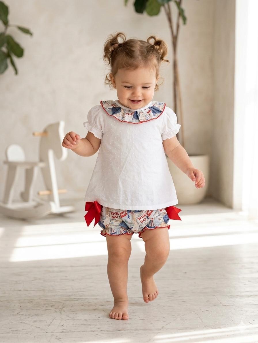 Daniesty Conjunto braga Estampado Air Mail Volante Plumeti Rojo Blusa Plumeti Blanco Volante Familia Holidays 010
