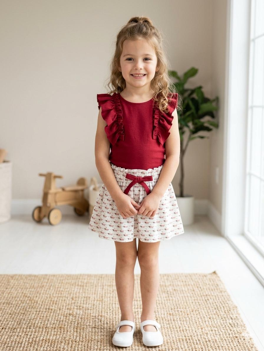 Daniesty Conjunto falda Estampado Perros Salchicha Blusa Punto Rojo Familia Coco 014