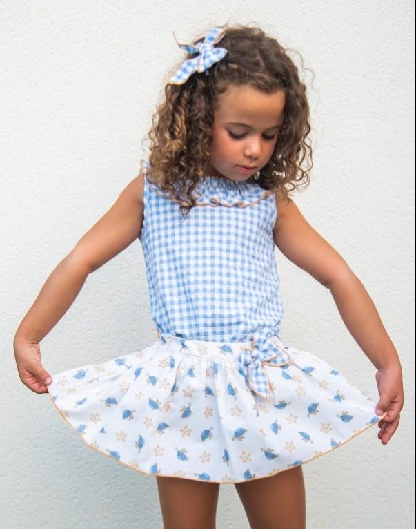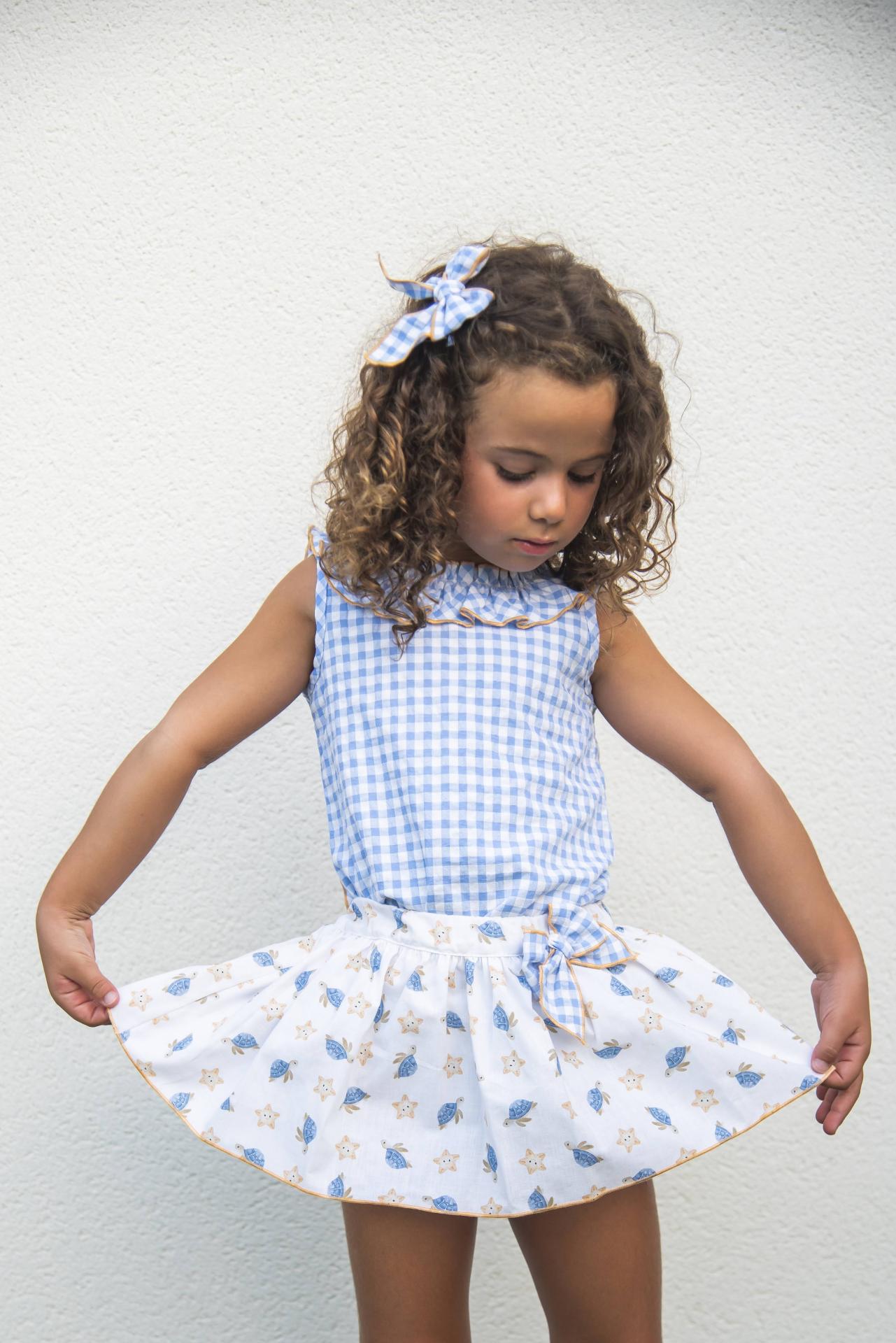Daniesty Conjunto Falda Estampado Tortugas Blusa Sin Mangas Cuadro Vichy Azul Familia Australia 014
