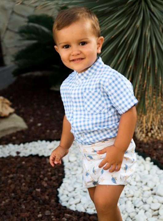 Daniesty Conjunto Niño Pantalon Estampado Tortugas Camisa Cuadro Vichy Azul Familia Australia 007