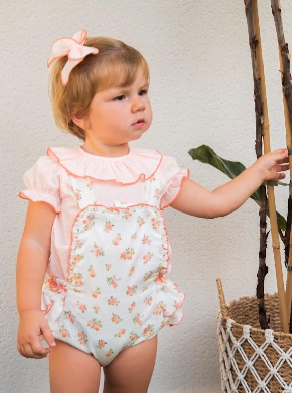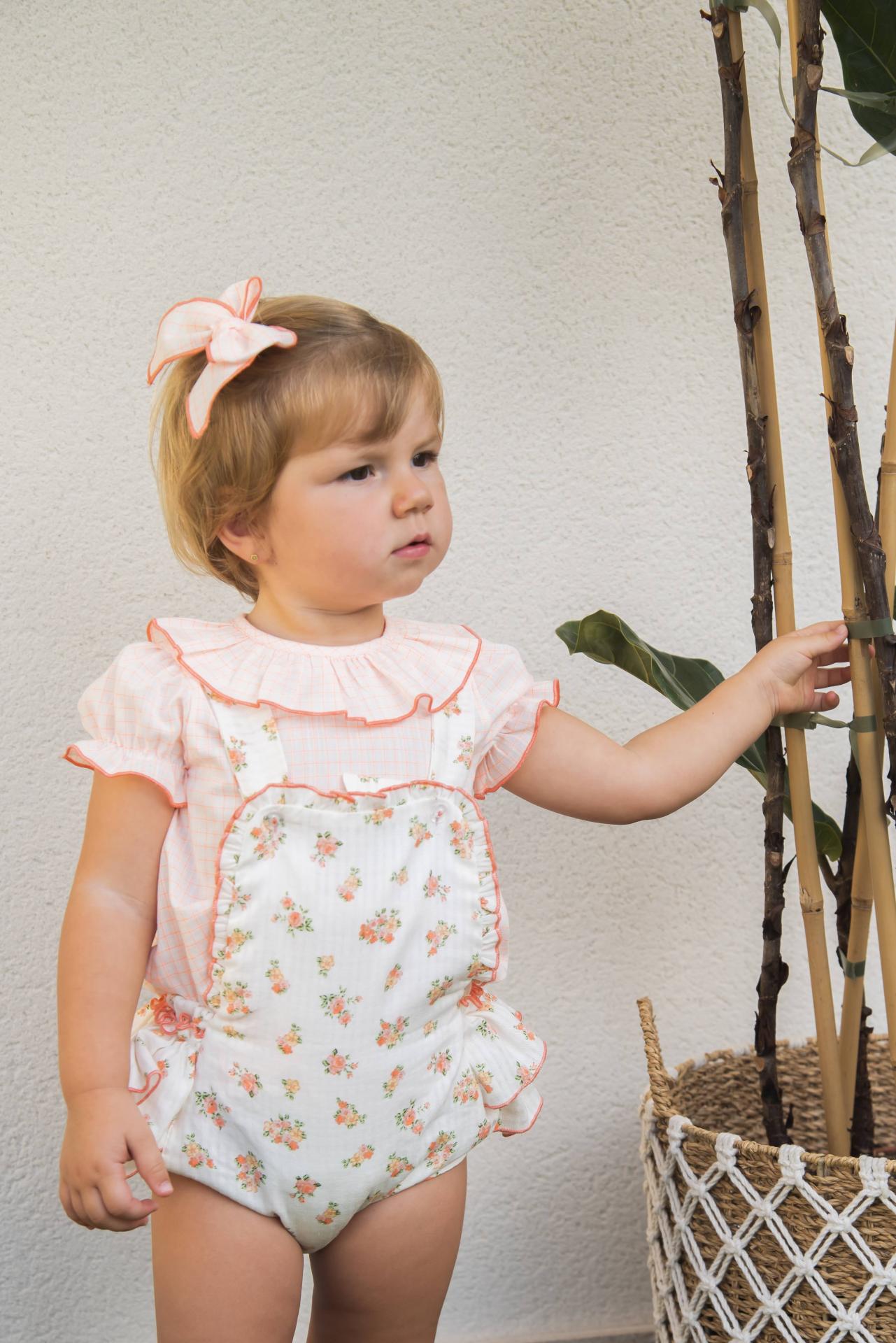 Daniesty Conjunto Ranita Peto Estampado Flores Blusa Cuadros Naranja Florencia 000