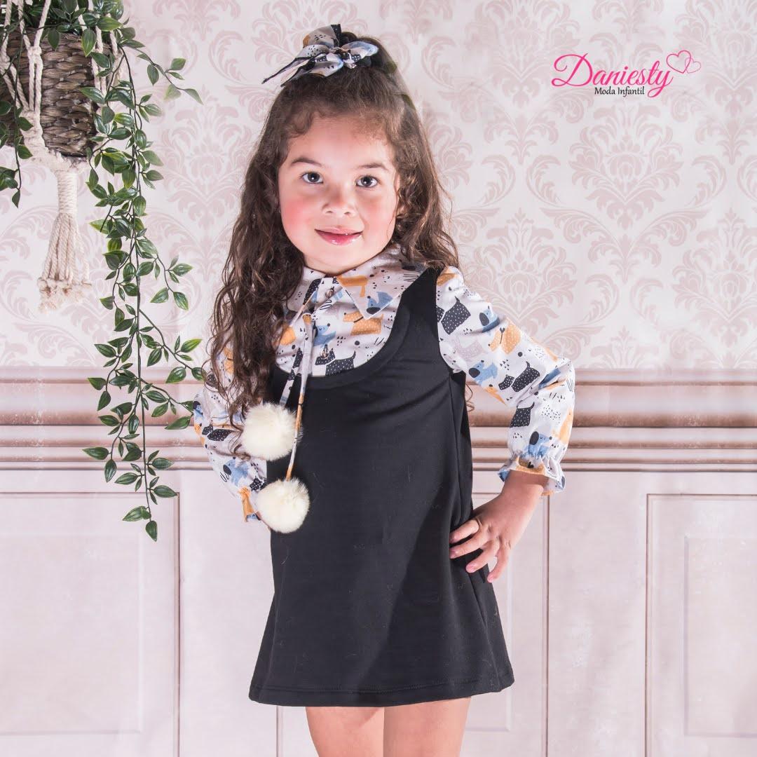 Daniesty Vestido Infantil tipo Pichi Marino Ebasé Pompones Mangas Estampadas Perritos Familia Toby 017