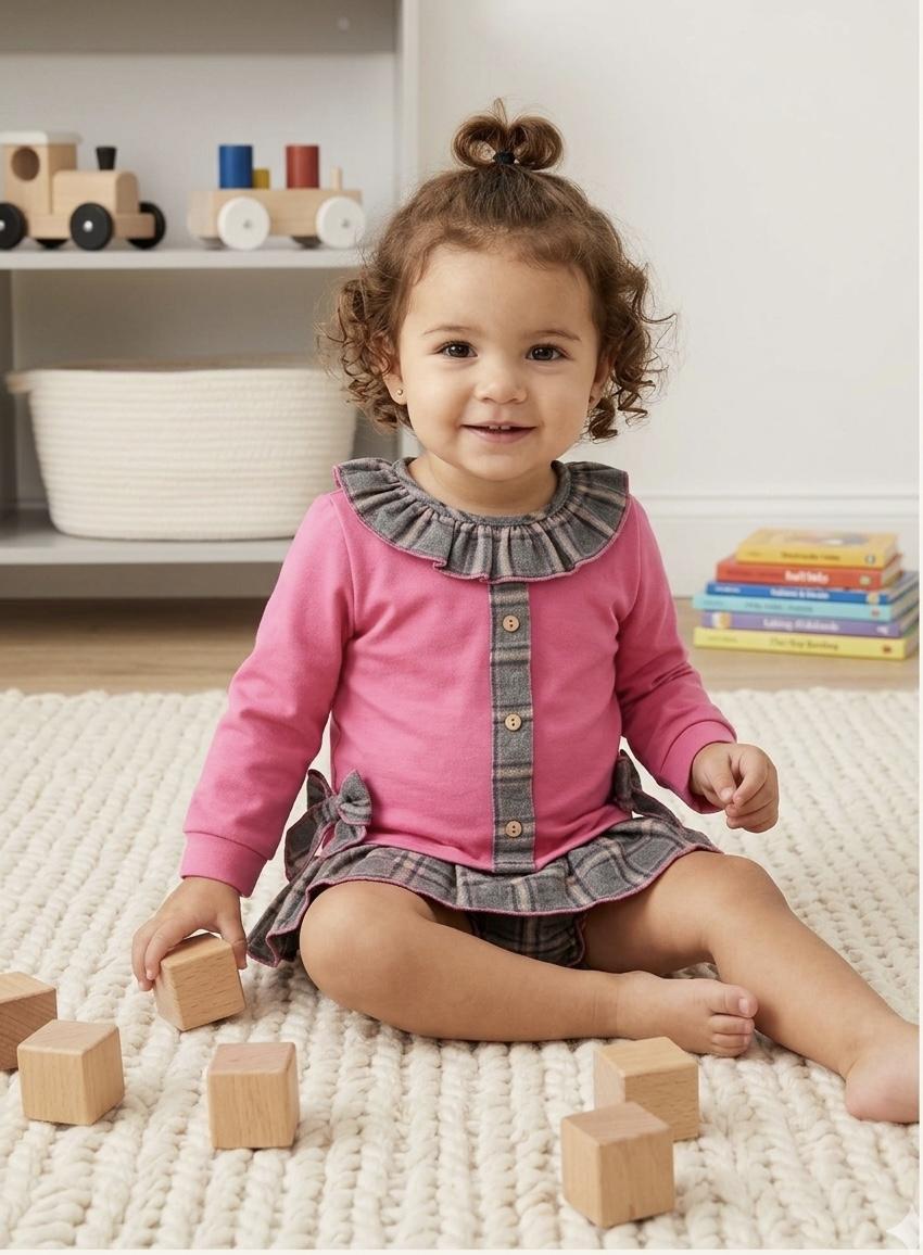 Daniesty Conjunto Sudadera Punto Rosa Braguita Cuadros Gris Familia Rosalia 015