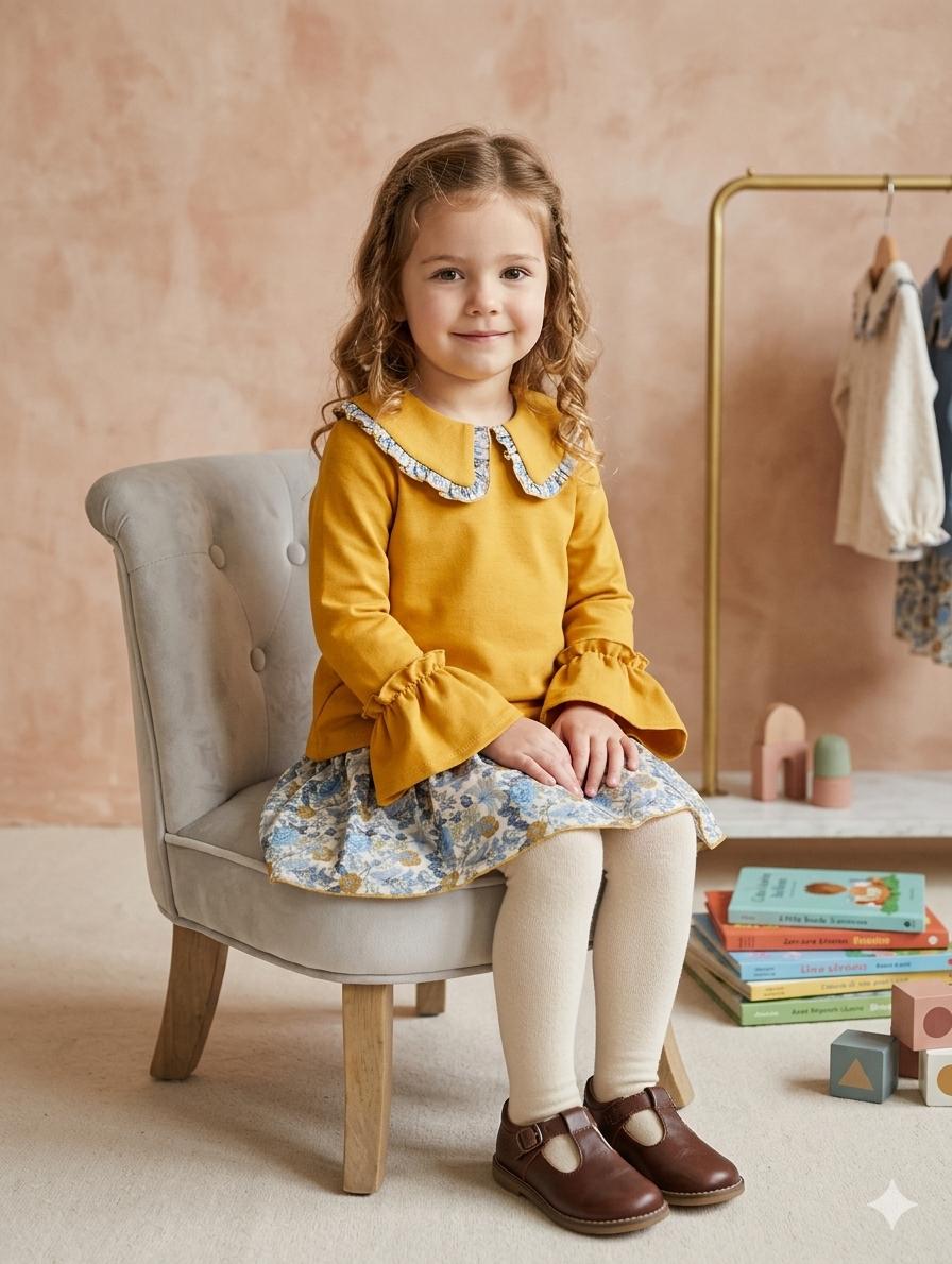 Daniesty Conjunto Sudadera Mostaza Falda Braguita Estampado flores Azul Familia Anai 014