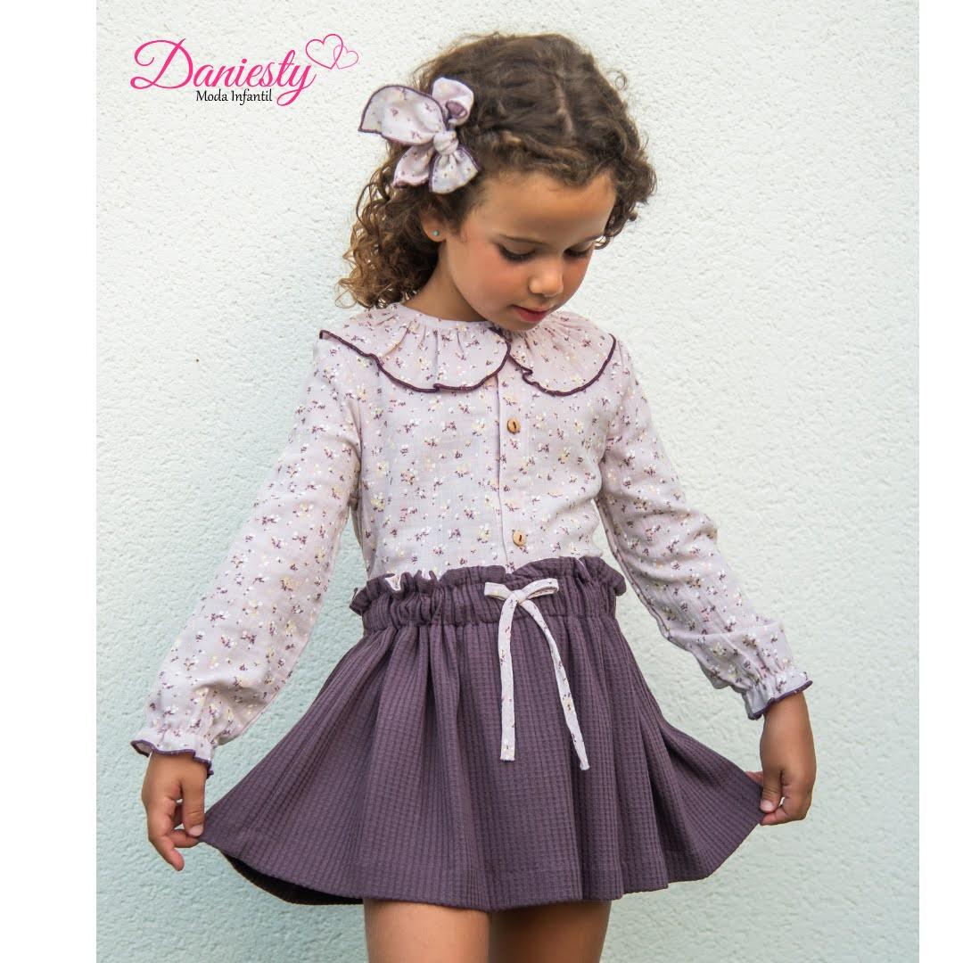 Daniesty Conjunto Infantil Blusa Malva Estampada Flores Falda Familia Violeta 014