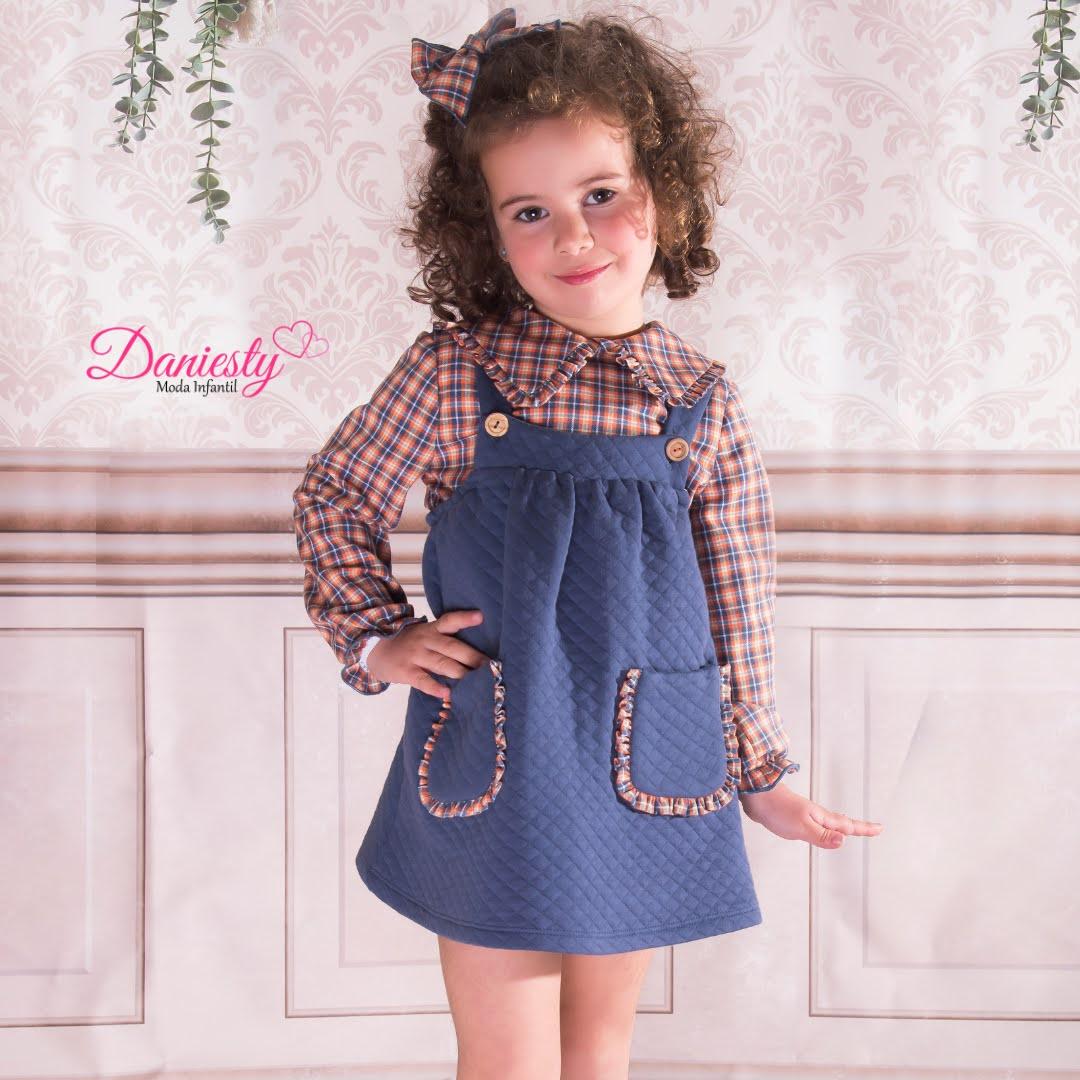 Daniesty Conjunto Pichy Vestido Cloque Azul Camisa de Cuadros Familia Gabriela 017