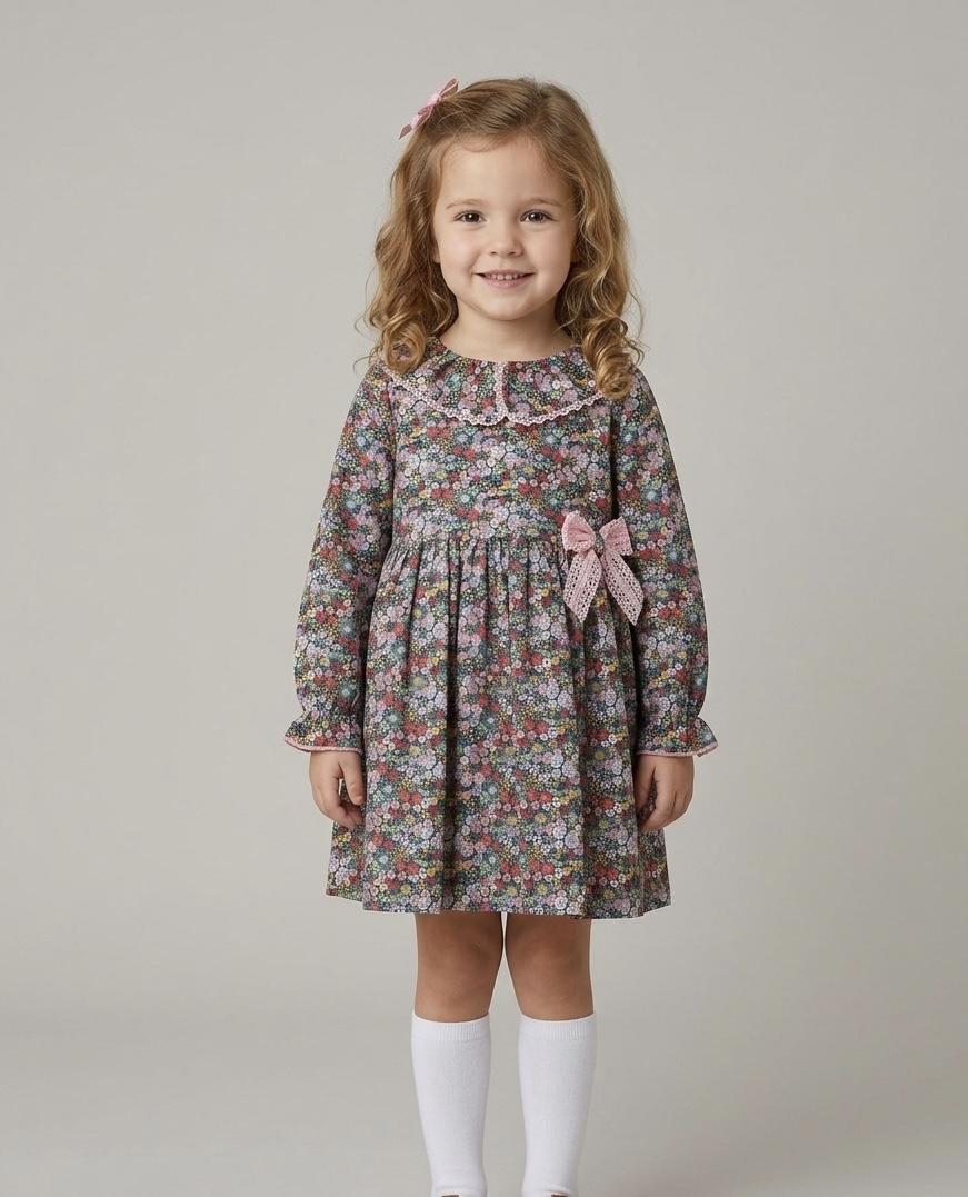 Daniesty Vestido Vuelo Estampado flores Lazada Puntilla Rosa Familia Azuzena 002