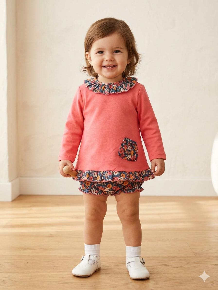 Daniesty Jesusito Coral Cuello Estampado Bolsillo Braguita Estampado Flores Familia Corina 001