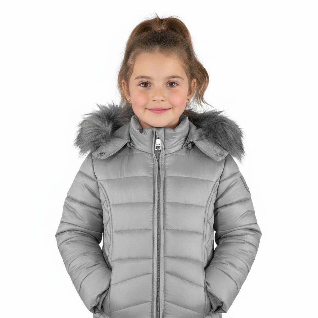Bonita trenka guateada en color gris de Miranda. Cierre delantero con cremallera visible y capucha de pelo desmontable.
