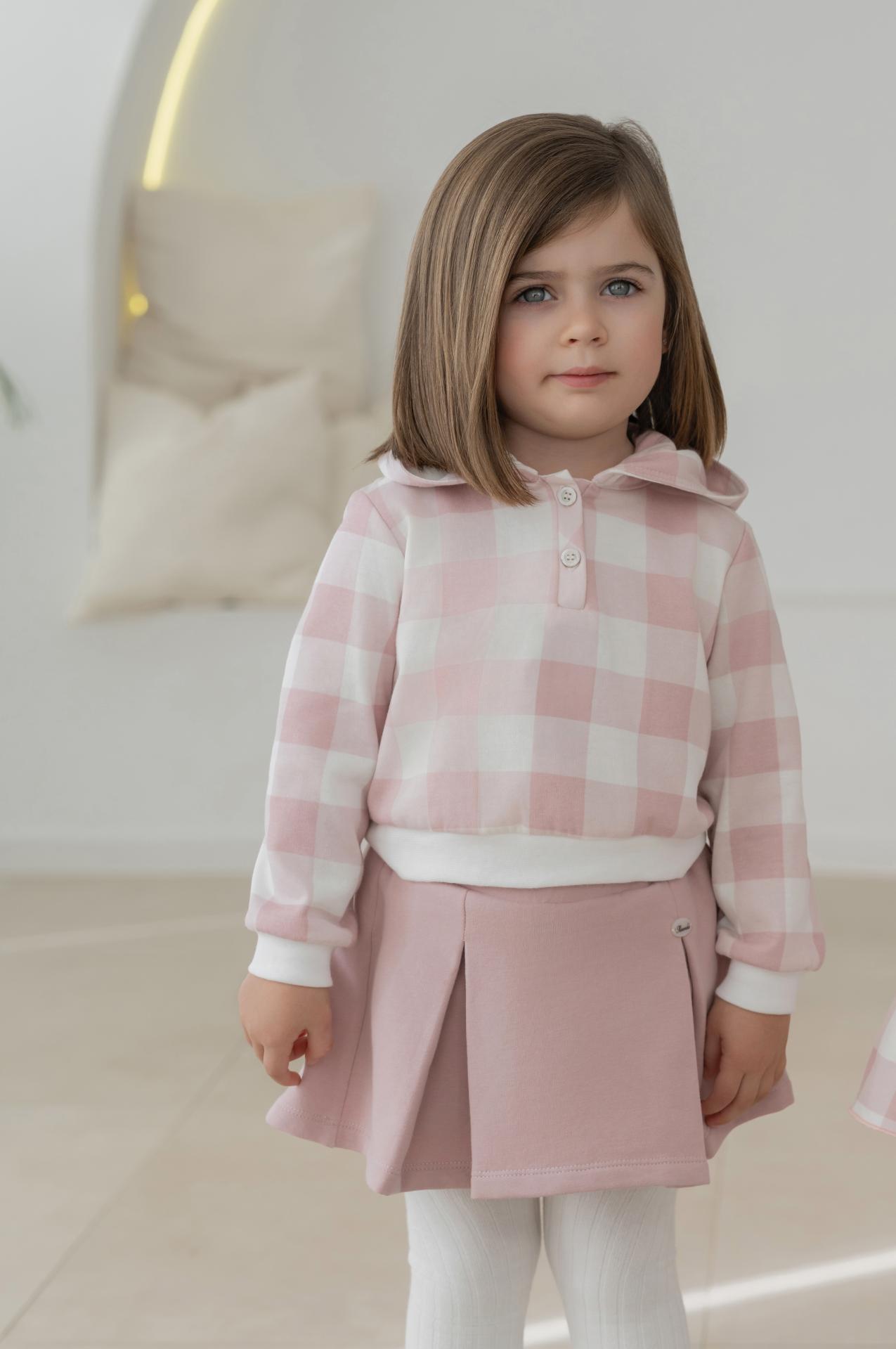 Miranda Conjunto Infantil Sudadera y Falda Pantalon Cuadro Grande Rosa "Maeve" 0618/13