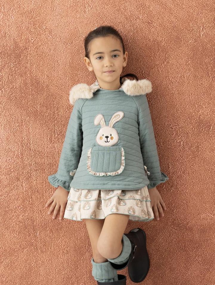 Basmarti Vestido Infantil Combinado Verde Agua Figura Conejo Capucha de pelo "Uffizi" 25710