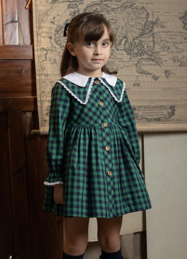 Basmarti Vestido Infantil Camisero Cuadro verde y Marino "Metropolitan" 25530