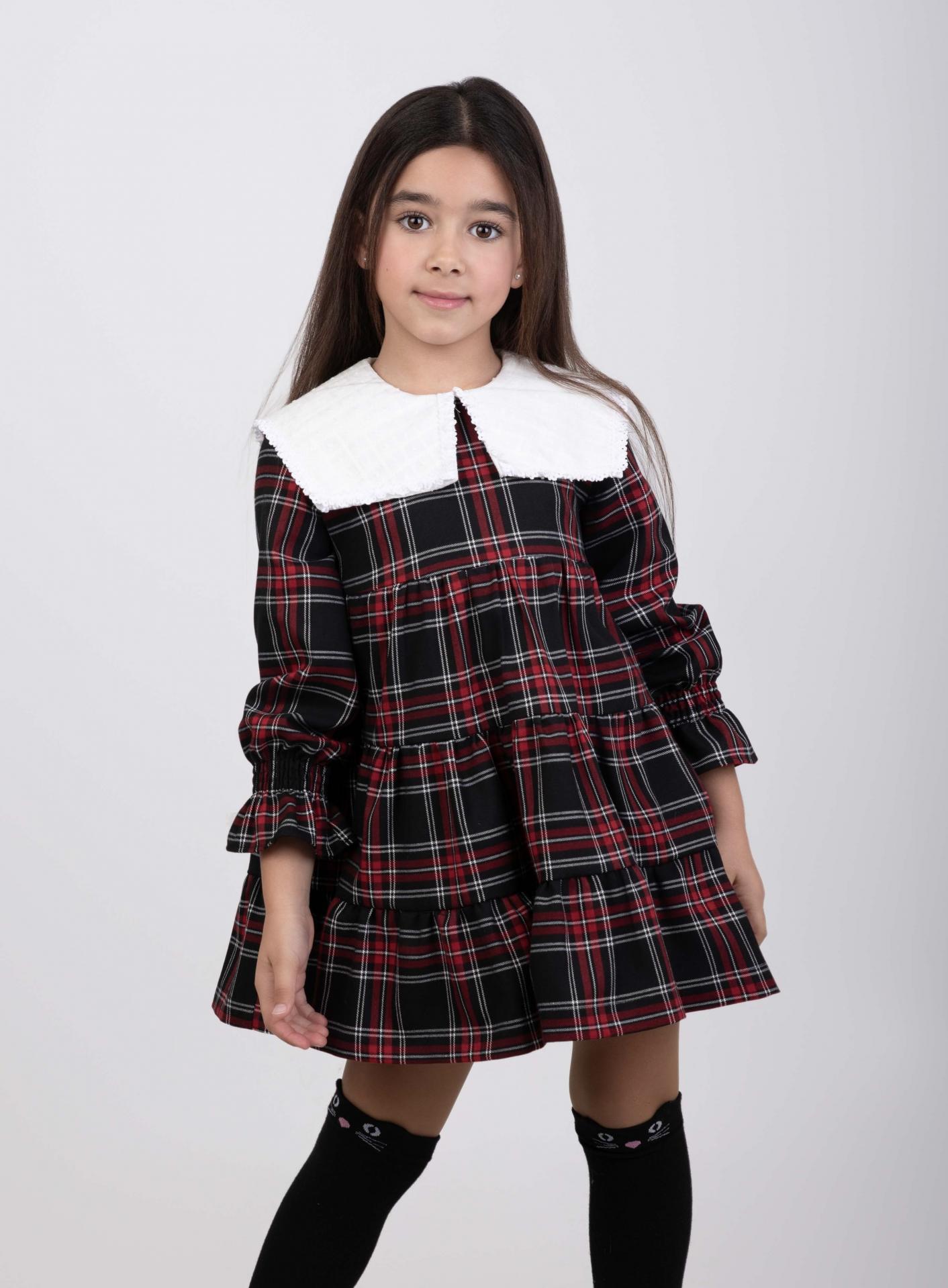Nekenia Vestido Infantil Cuadros Rojo y Negro Cuello Blanco "Claudia" 25IV20
