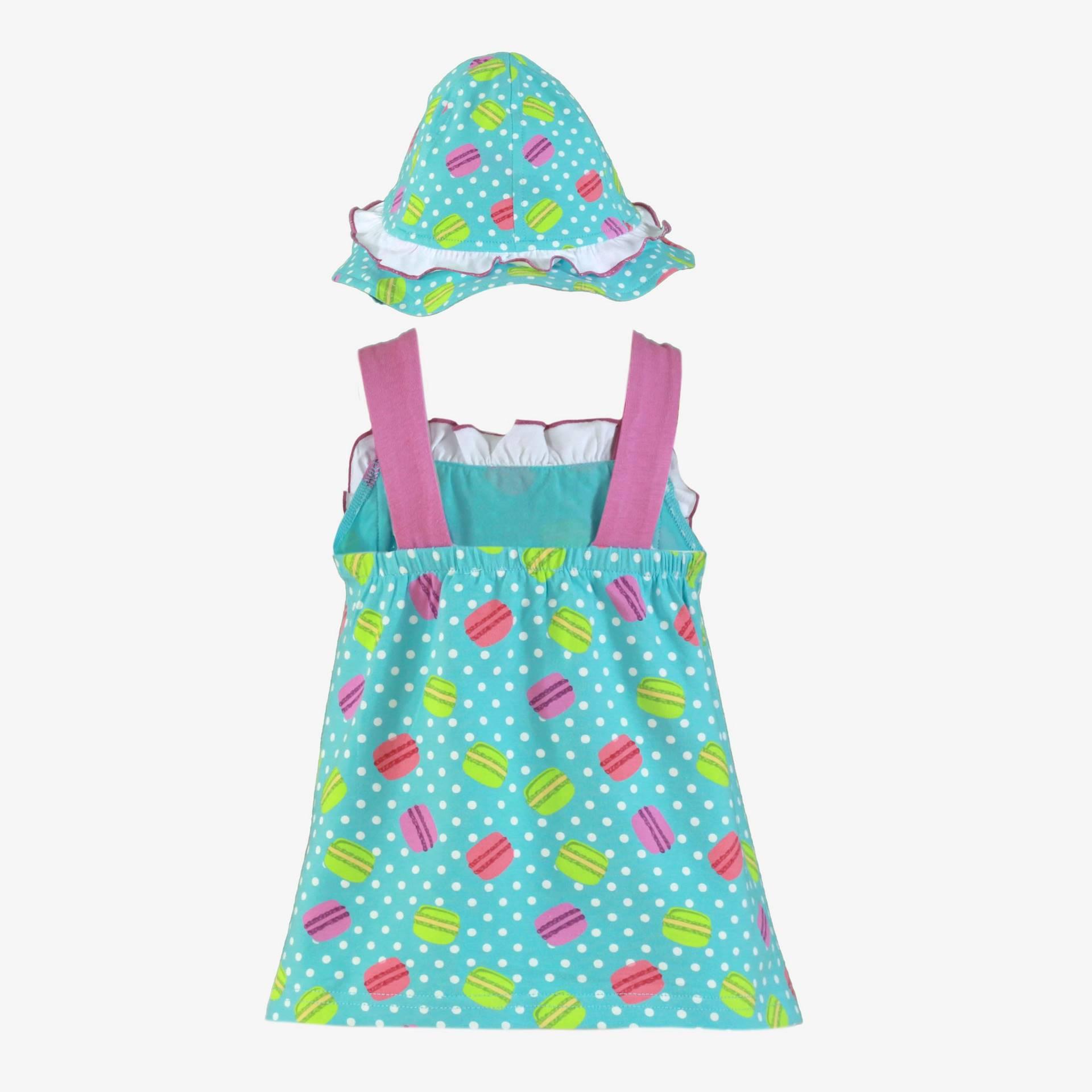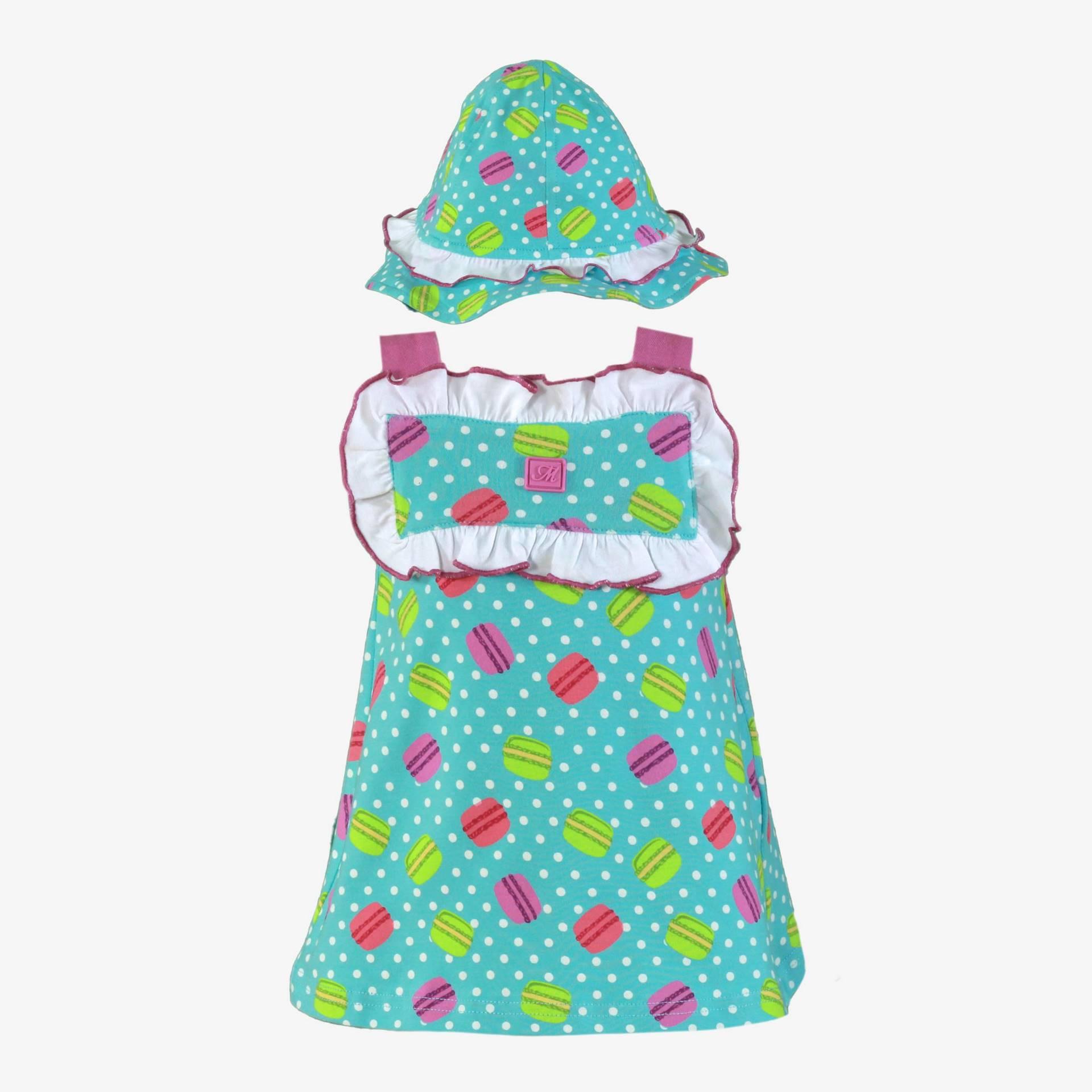 Miranda vestido bebe azul tirantes rosa estampado macarons gorrito "Osa Menor" 0406/VG