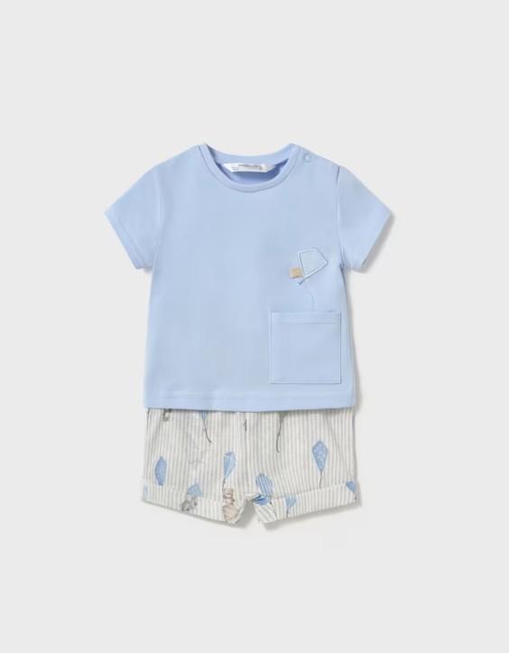Mayoral Conjunto pantalón corto estampado y camiseta 25-01202-037 Cielo