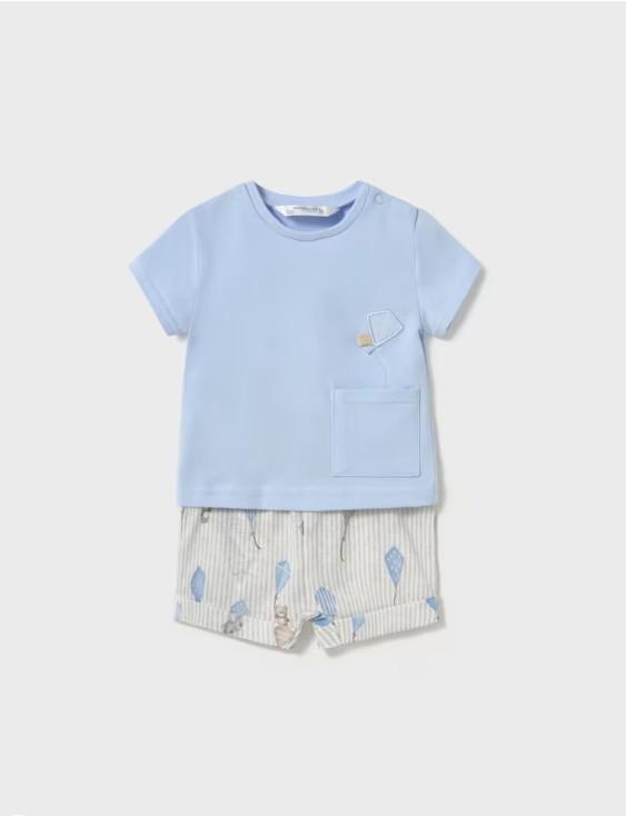 Mayoral Conjunto pantalón corto estampado y camiseta 25-01202-037 Cielo