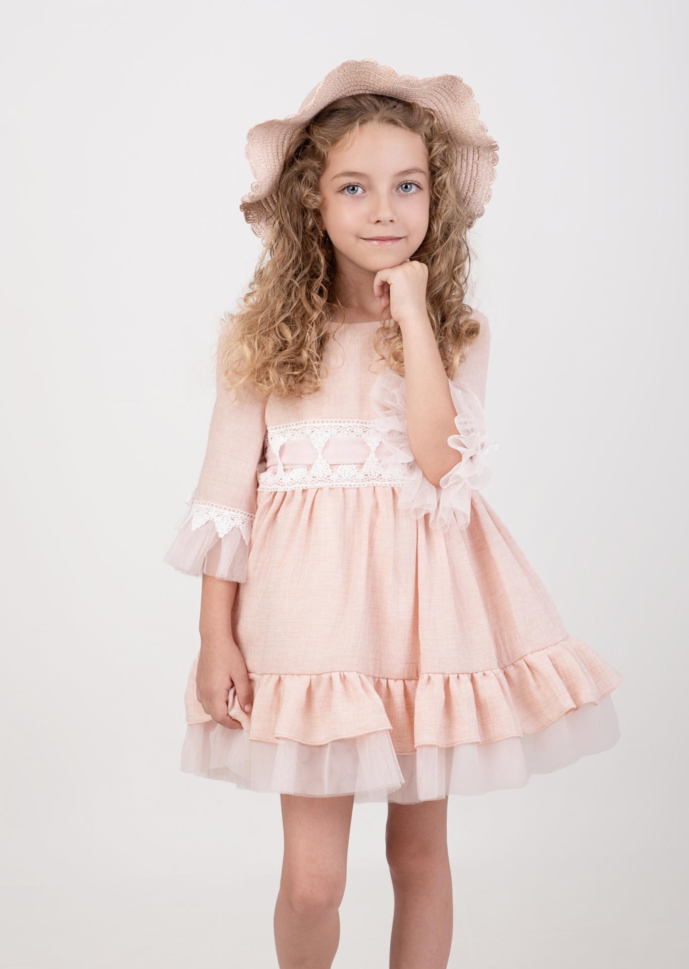 Nekenia vestido infantil ceremonia Salmón Pasacintas tul "Azucena" 2621829