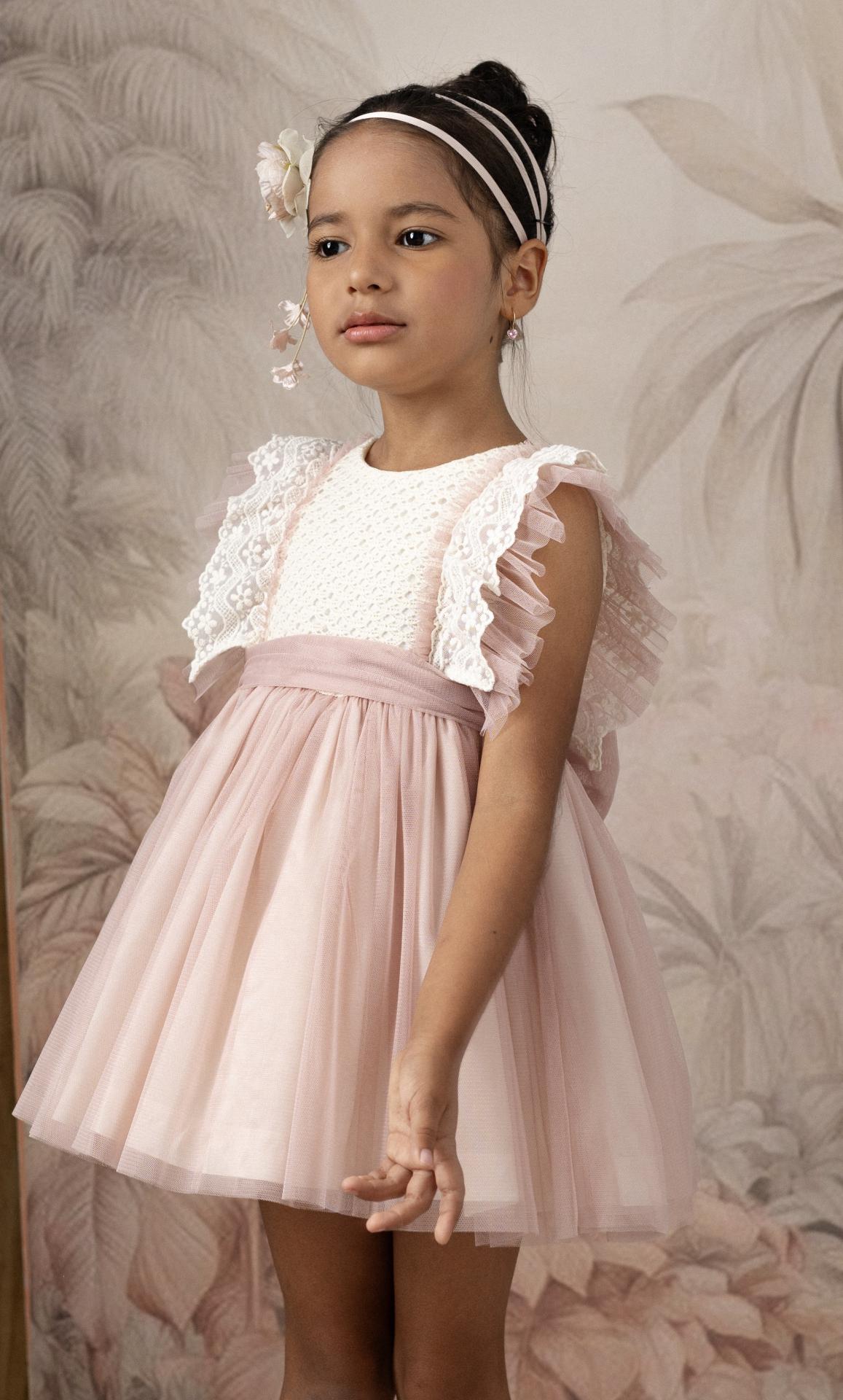 Basmarti Vestido Infantil ceremonia Cuerpo encaje falda tul rosa Alba 26031