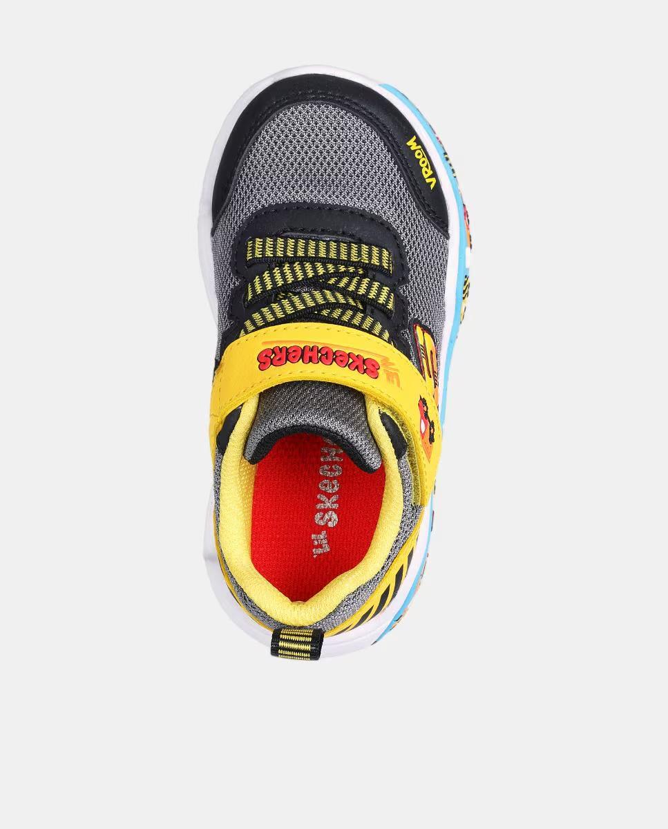 Skechers Deportivo Infantil Play Scene Caminones Gore Strap Sneaker Gris/Amarillo Lavable a máquina 407312N BKYL