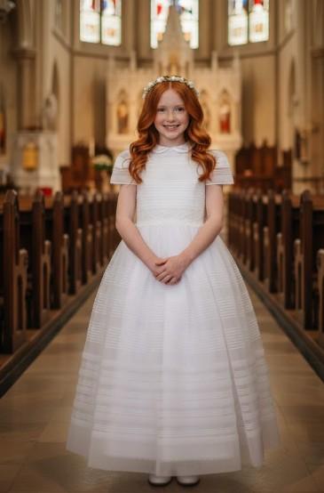 Vestido Comunión Niña Modelo Esmeralda Cristal Beige