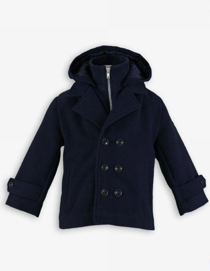 Fabulosa prenda de abrigo para niño de la marca Miranda. Esta confeccionada en paño de color azul marino y lleva capucha forrada. Luce bolsillos funcionales de tipo ojal y cierra en el delantero con cremallera y botonadura doble de 3 botones vistos.