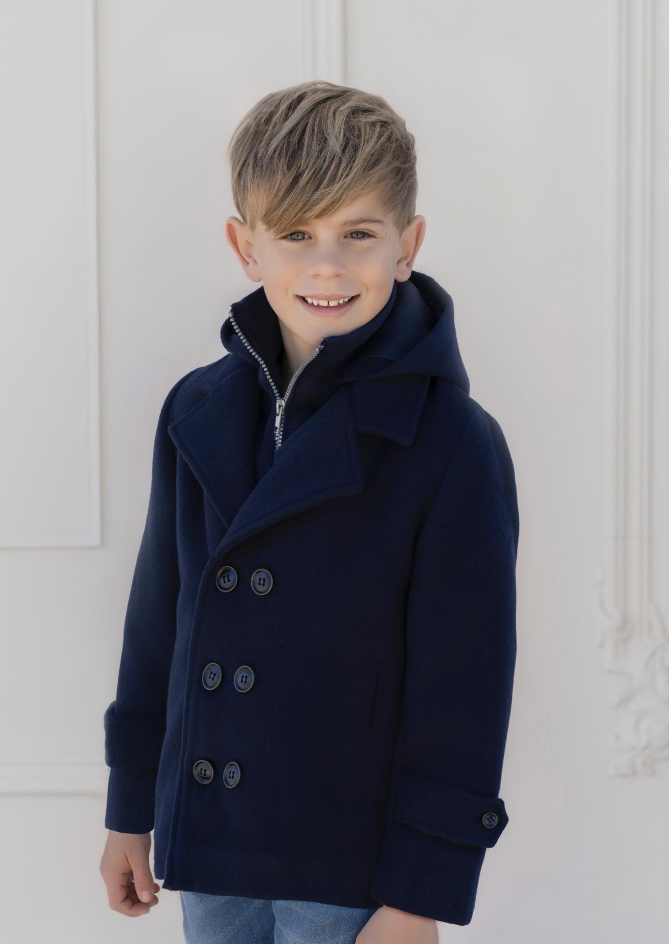 Fabulosa prenda de abrigo para niño de la marca Miranda, confeccionada en paño de color azul marino de gran calidad, perfecta para los días fríos del invierno. Su diseño combina elegancia y funcionalidad, ofreciendo un estilo clásico con un toque moderno. Cuenta con capucha forrada, que aporta calidez y comodidad, ideal para proteger del viento y el frío. En el delantero, luce bolsillos funcionales tipo ojal, prácticos y discretos, y cierra con cremallera oculta bajo una botonadura doble de tres botones vistos, que refuerzan su aire sofisticado y cuidado en cada detalle. Un abrigo versátil y distinguido, ideal para completar los conjuntos más elegantes del armario infantil.