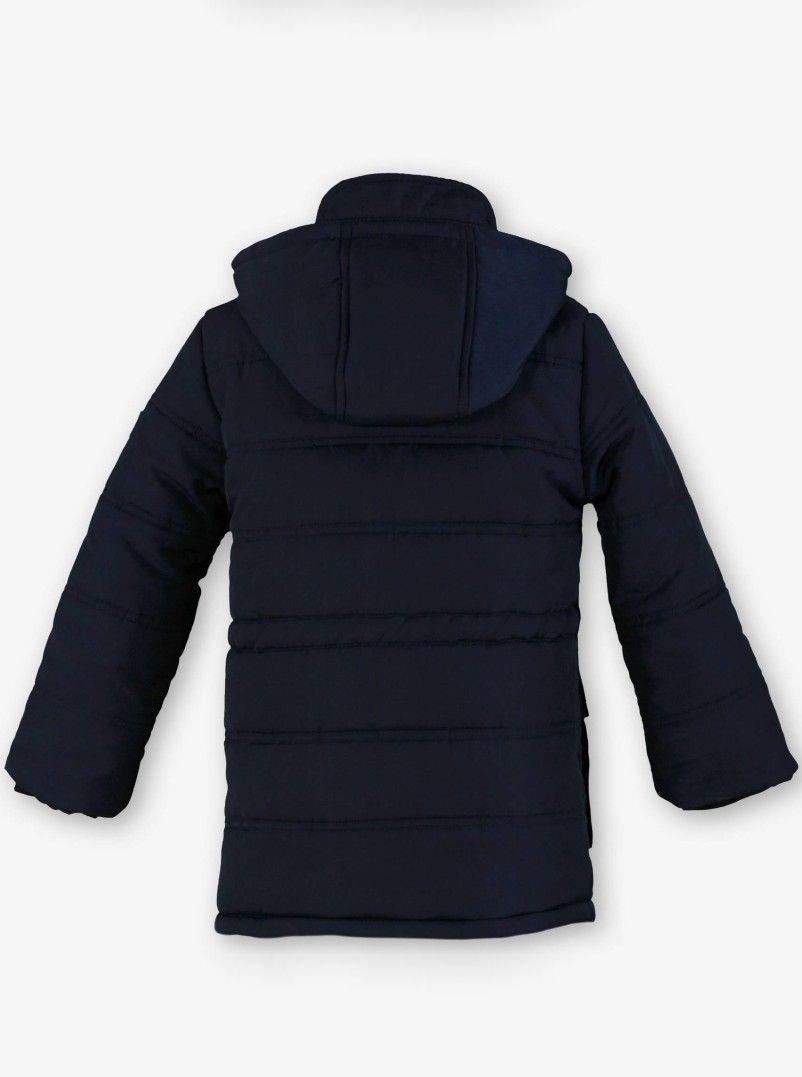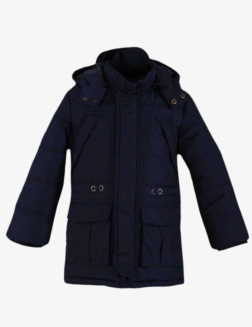 Magnifico chaquetón para niño de la marca Miranda. Esta confeccionado en azul marino y luce bolsillos funcionales de tipo plastrón, asi como capucha desmontable.