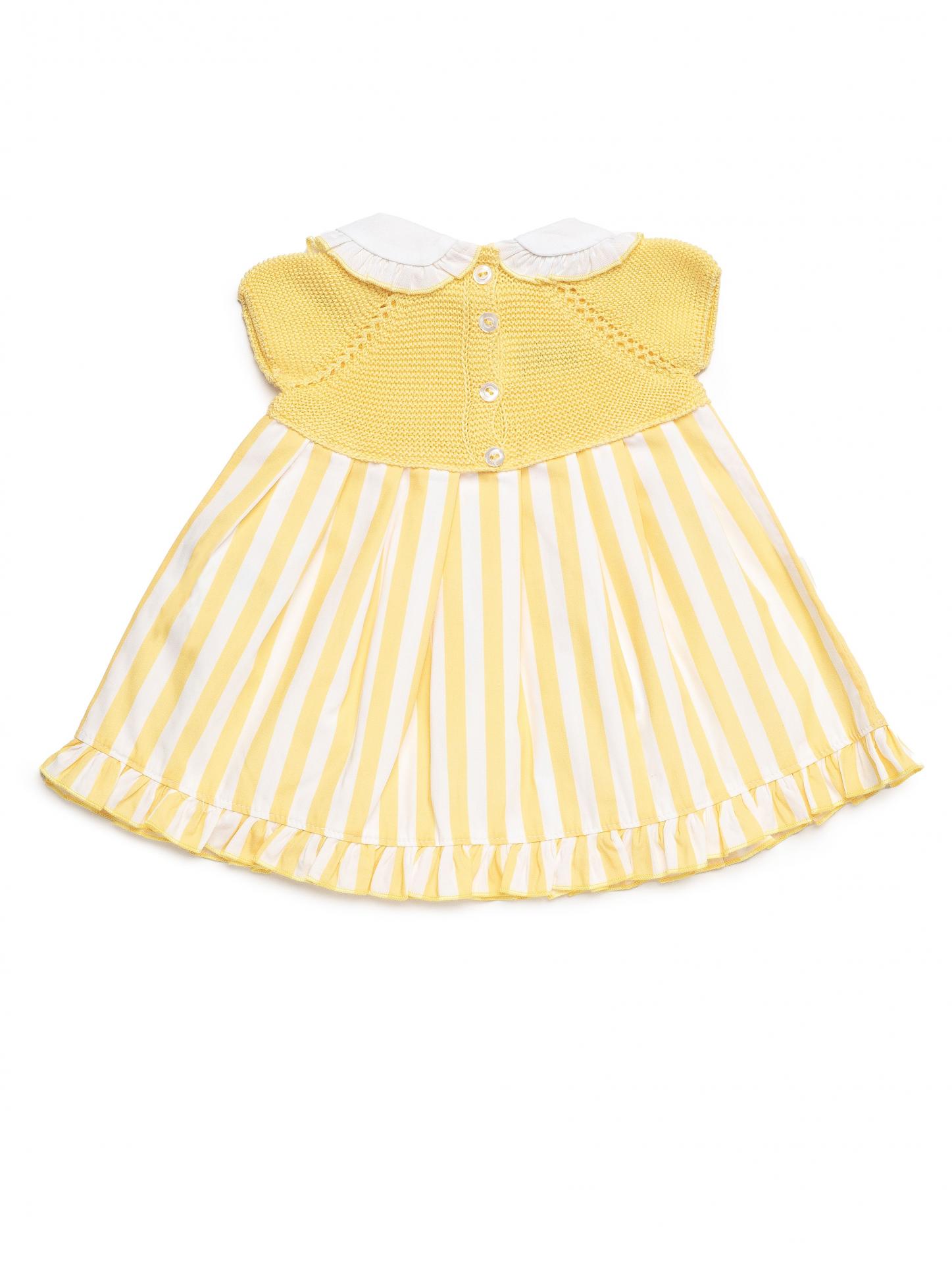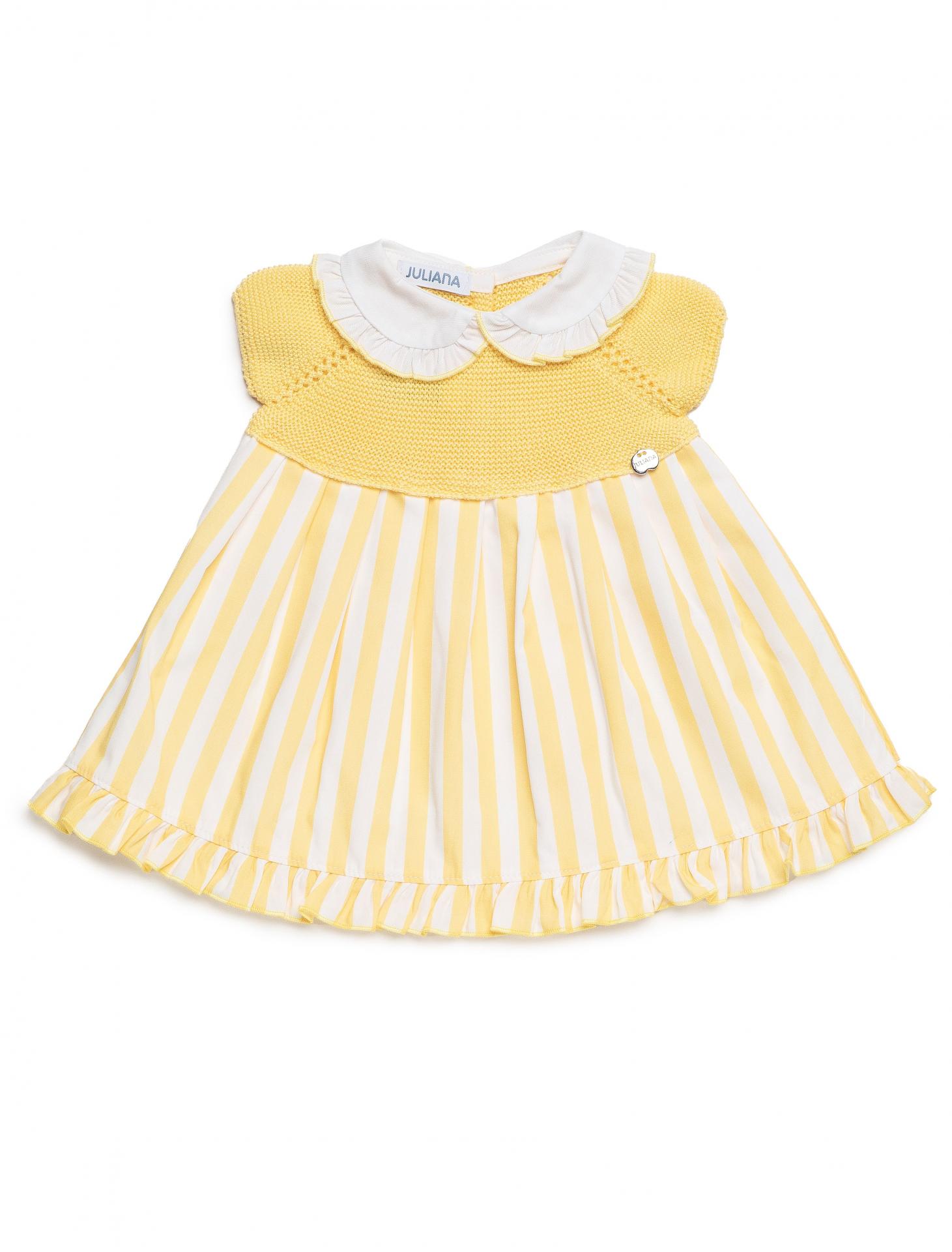Juliana Vistiendo Bebés Vestido Cuerpo Punto Falda Tela Rayada Amarillo Cuello "Limón" 26122