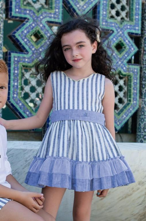 Nekenia Vestido Infantil Ceremonia Rayas Azul Escote Espalda Volantes Tul Bajo 2221849