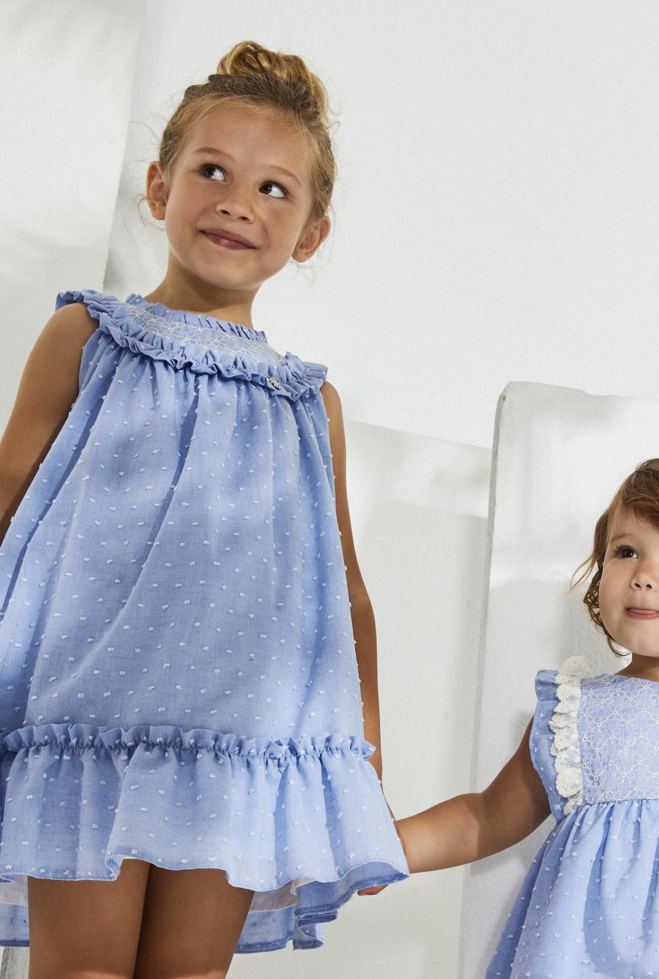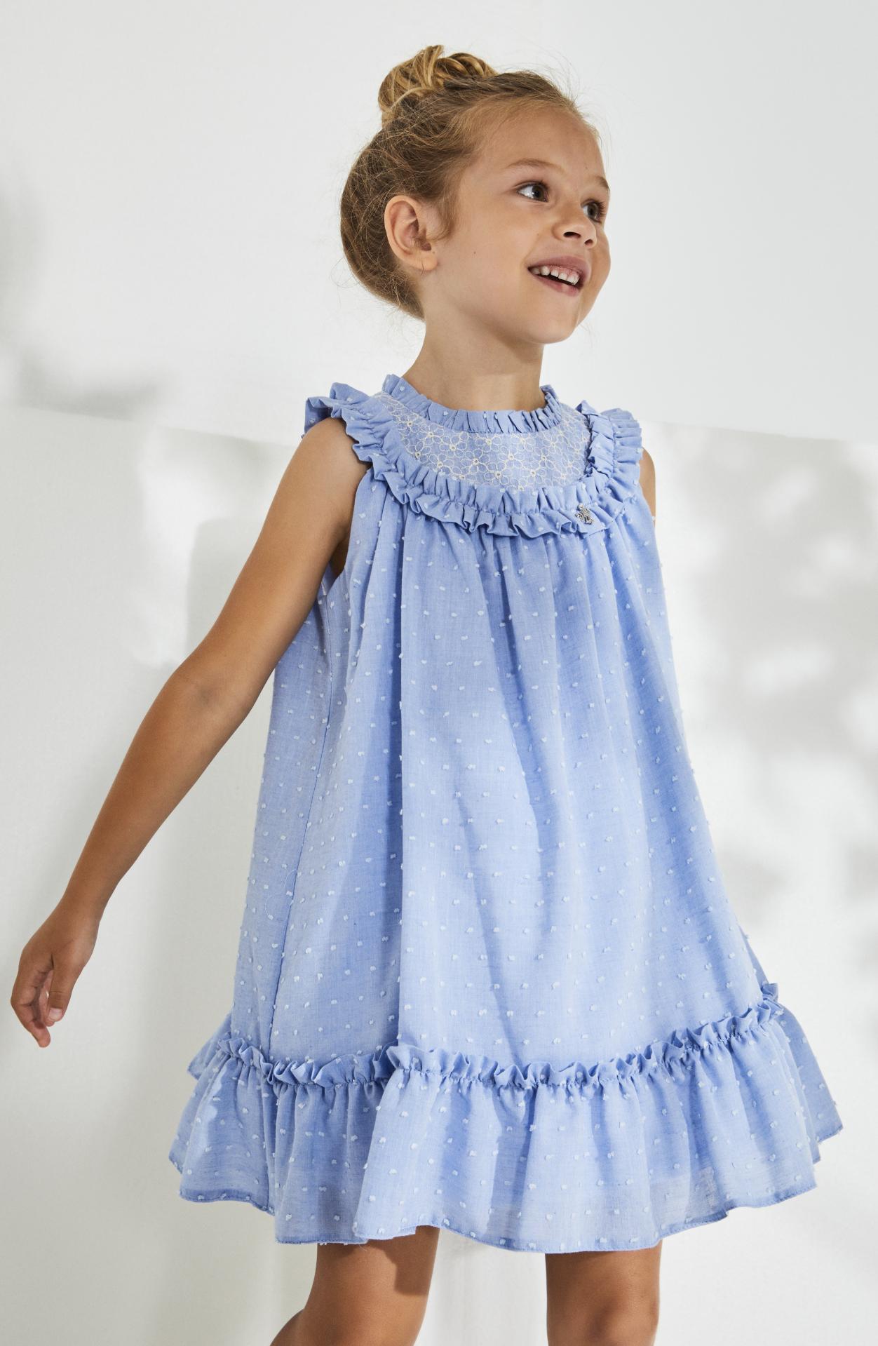 Nekenia Vestido Infantil Lozova Plumeti Azul Celeste Volante Bordado Pecherin Bordado 2321817