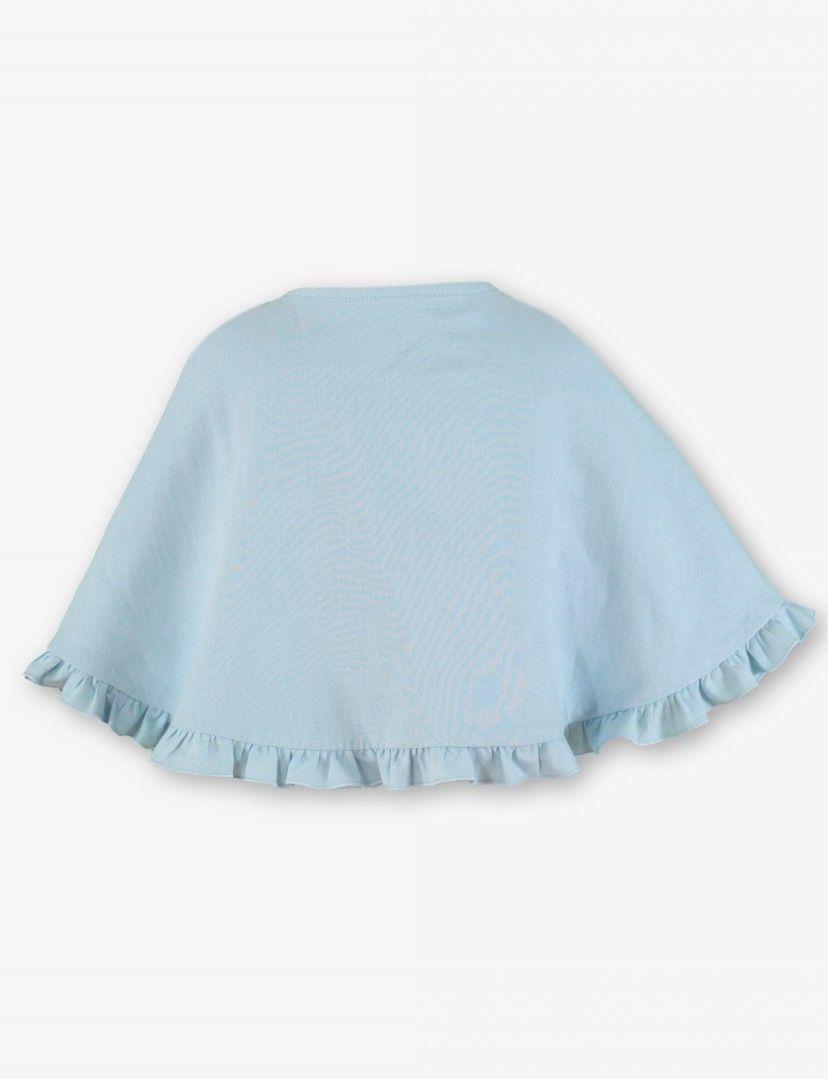 Encantadora capa para niña de la marca Miranda, confeccionada en un suave y elegante tono azul celeste, perfecta para completar looks especiales con un toque cálido y sofisticado.