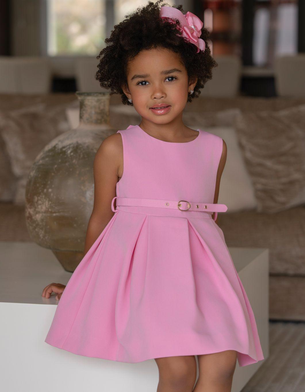 Bellísimo vestido sin mangas para niña de la reconocida marca Miranda, una prenda que combina elegancia clásica con un refinado estilo moderno. Confeccionado íntegramente en un exquisito tejido de color rosa oscuro, este diseño destaca por su presencia sofisticada y su impecable acabado, ideal para ceremonias y ocasiones especiales.