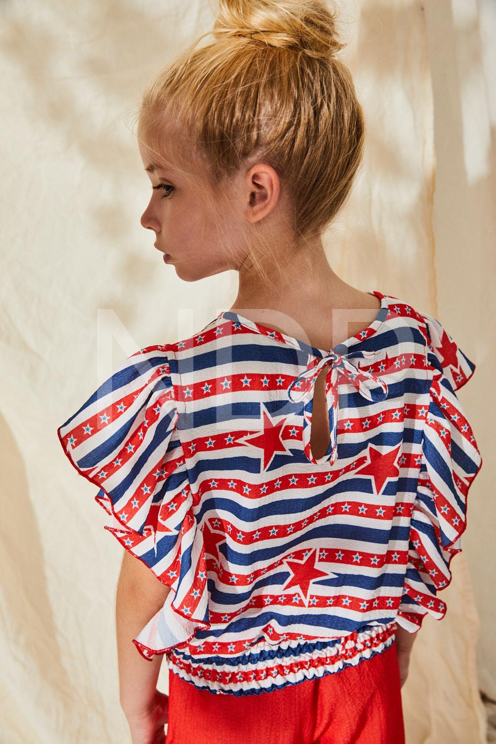 Nekenia Conjunto Infantil Top Rayas Estrellas Volantes Pantalón Largo Rojo 23VC02